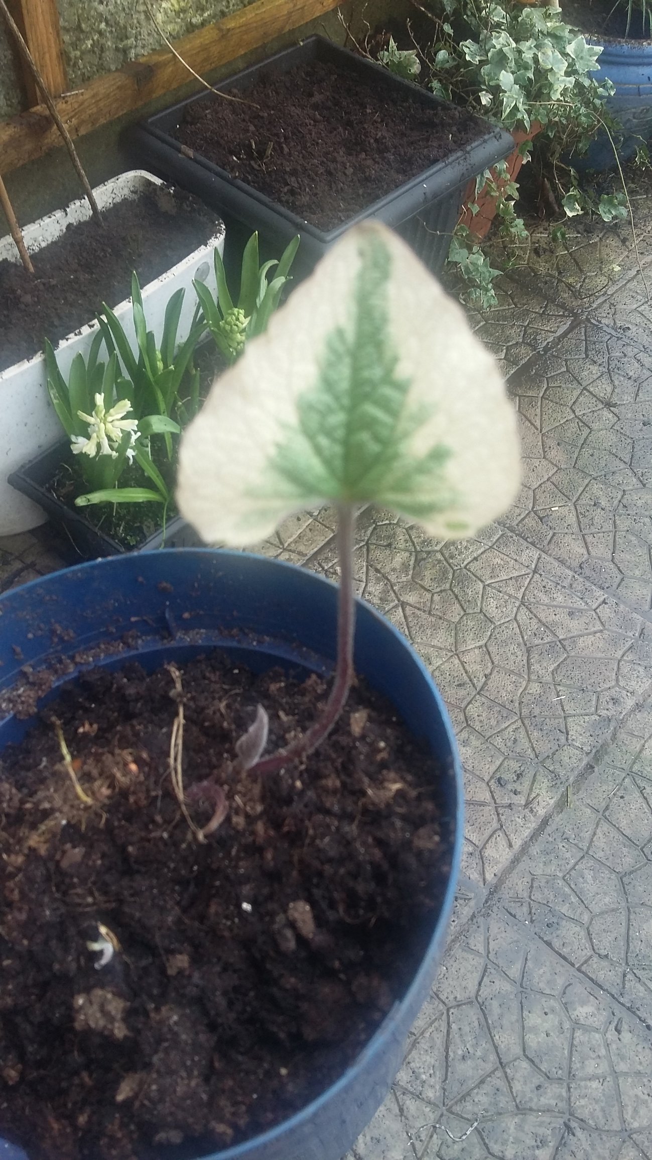 Found this.....anybody recognise what it will be? It's just that one healthy looking leaf growing sideways out of the pot. There is more new growth at the bottom of the stem.