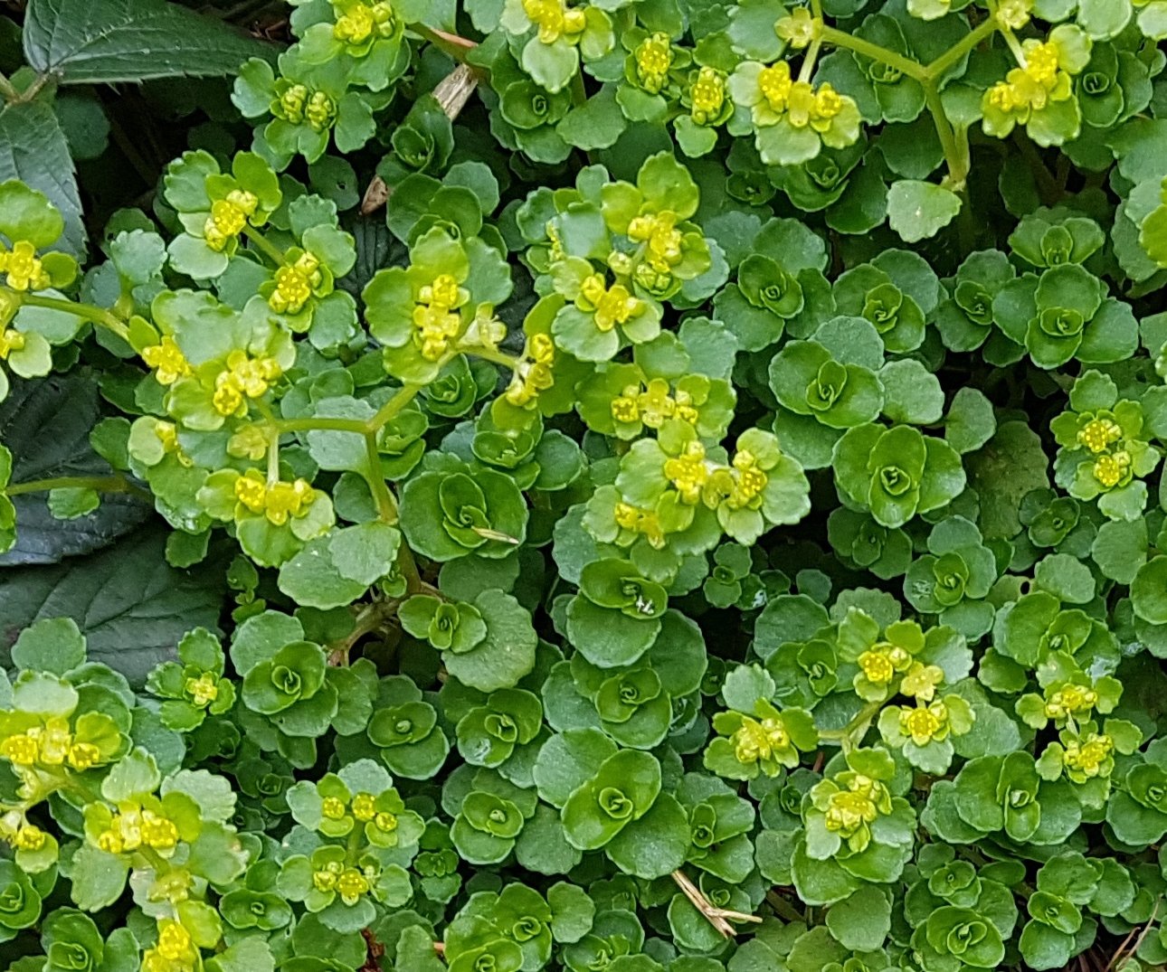 BobTheGardener said: I think nut has it - Chrysosplenium oppositifolium (Opposite-leaved Golden Saxifrage.)