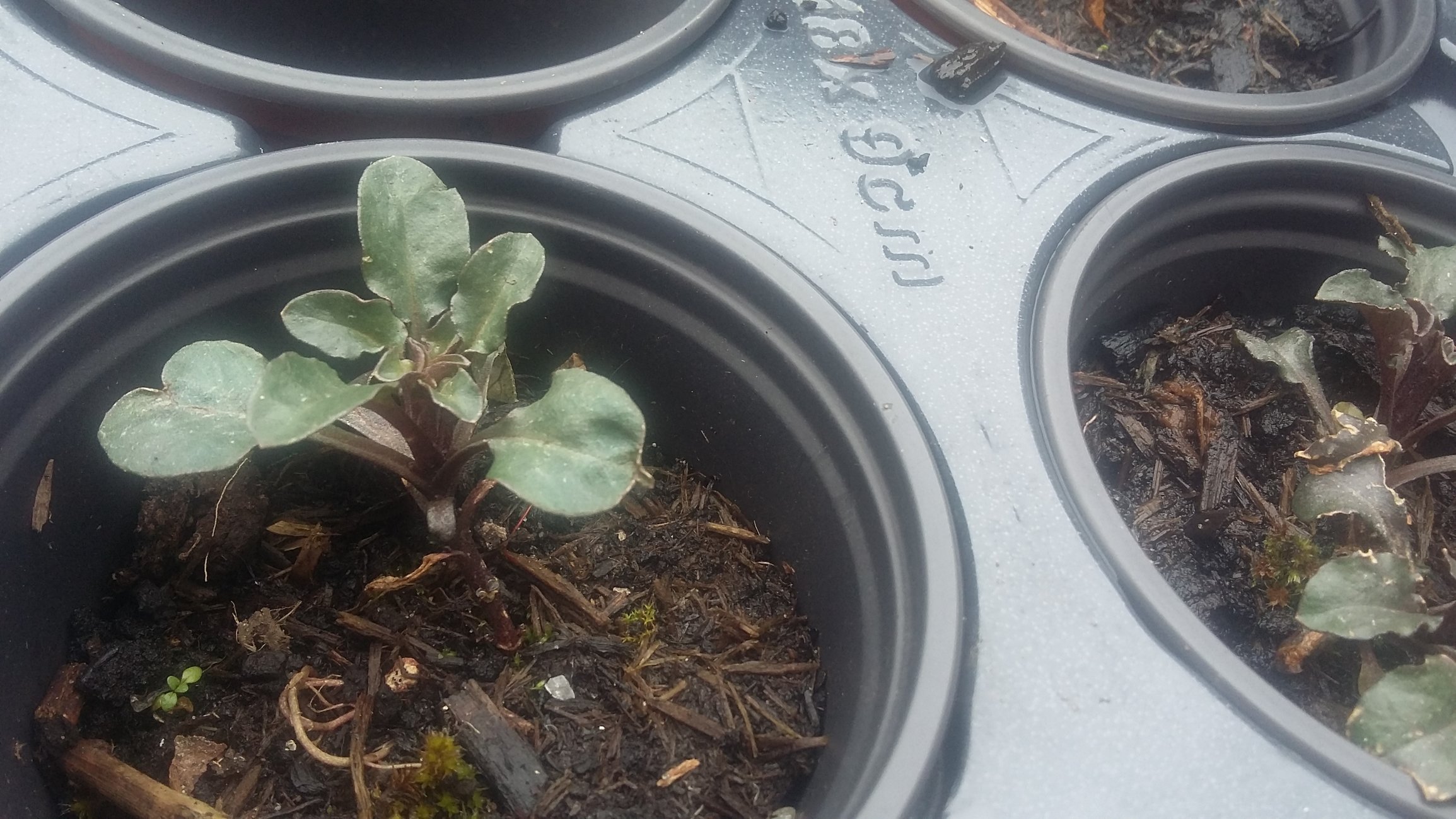 No 1 resembles some sort of Violaceae seedling, a bit purplish from the weather or a trait?