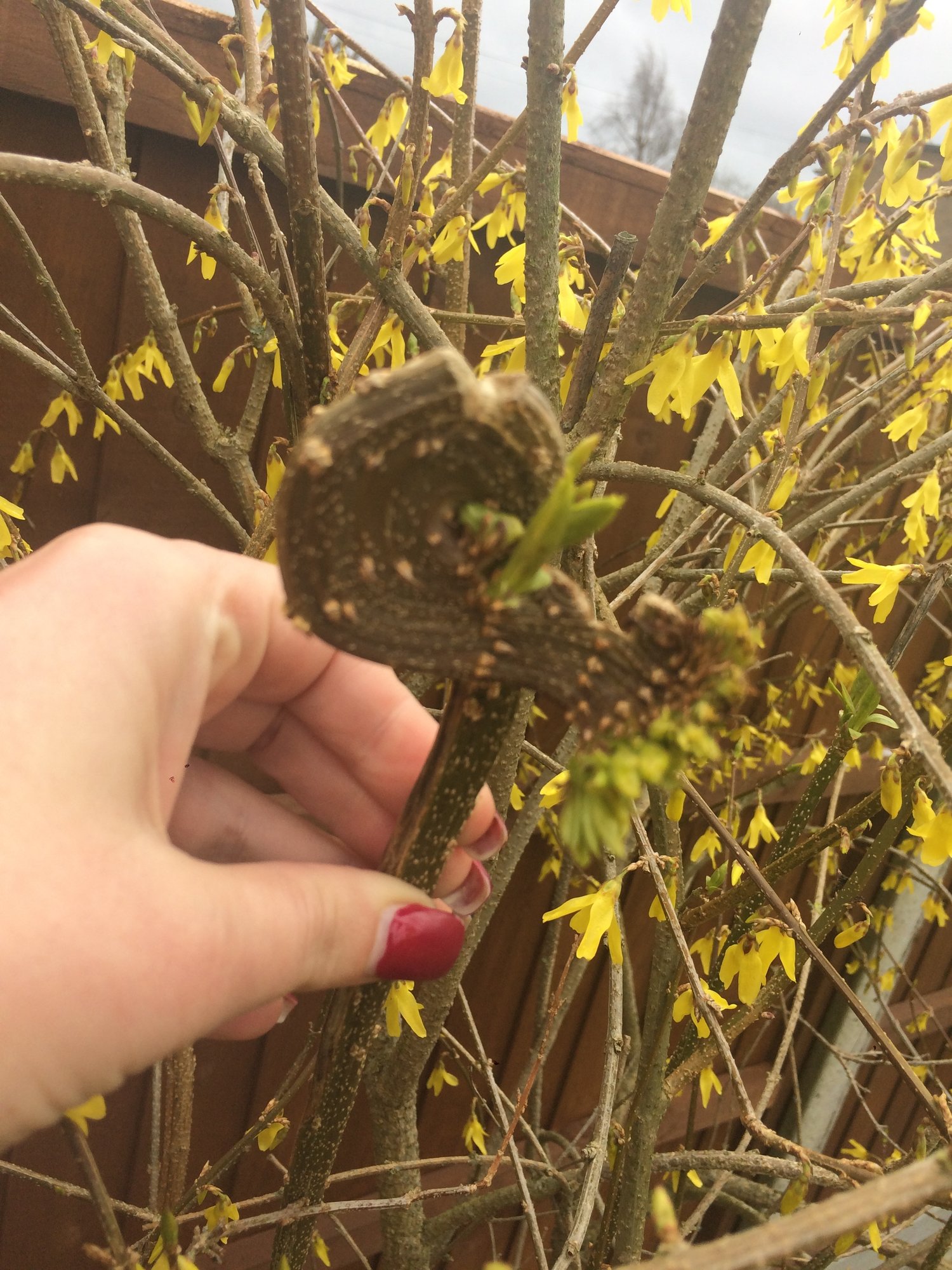 just spotted this odd branch in my forsythia..any idea why it’s grown like this and whether I should remove!?