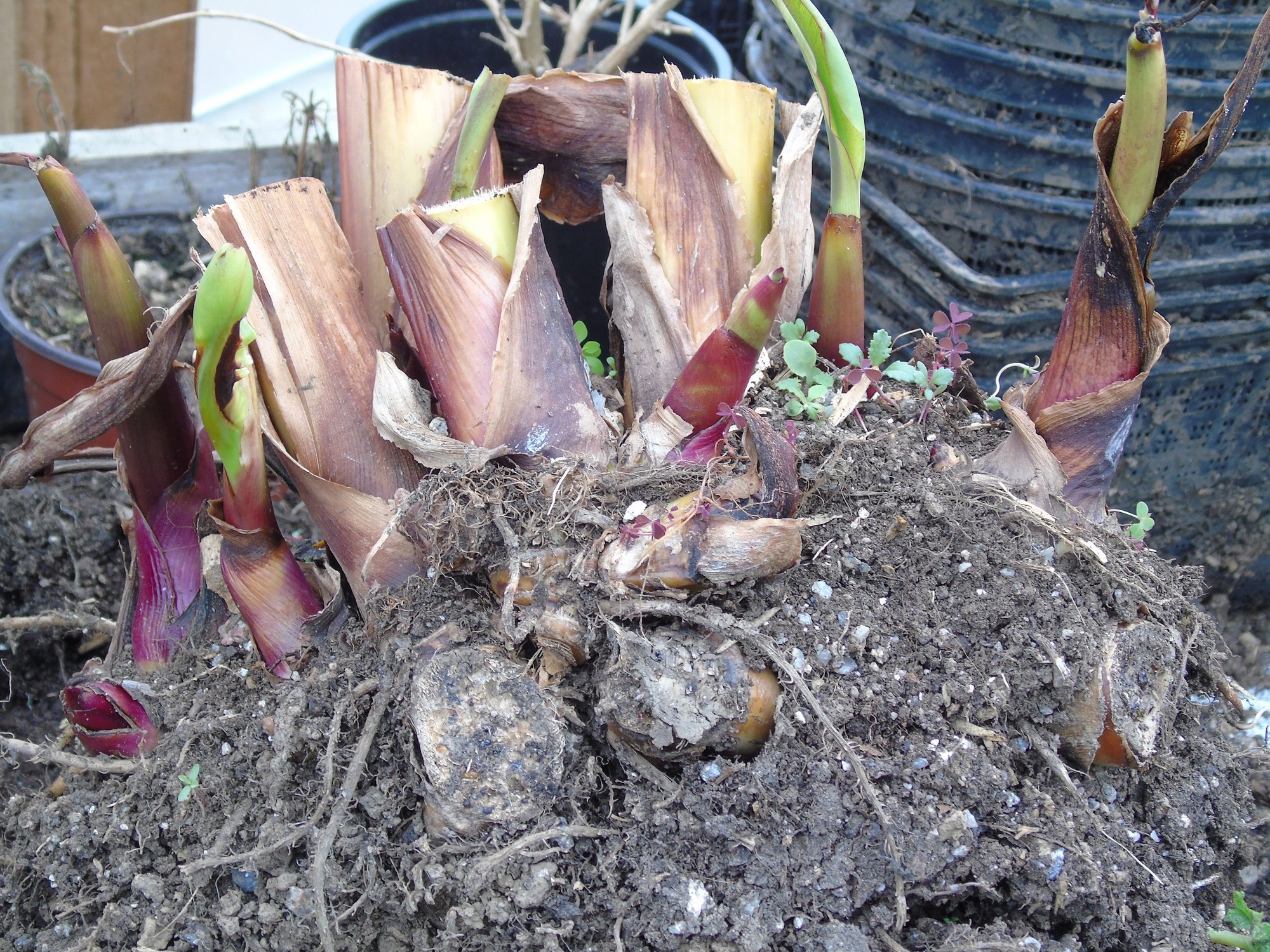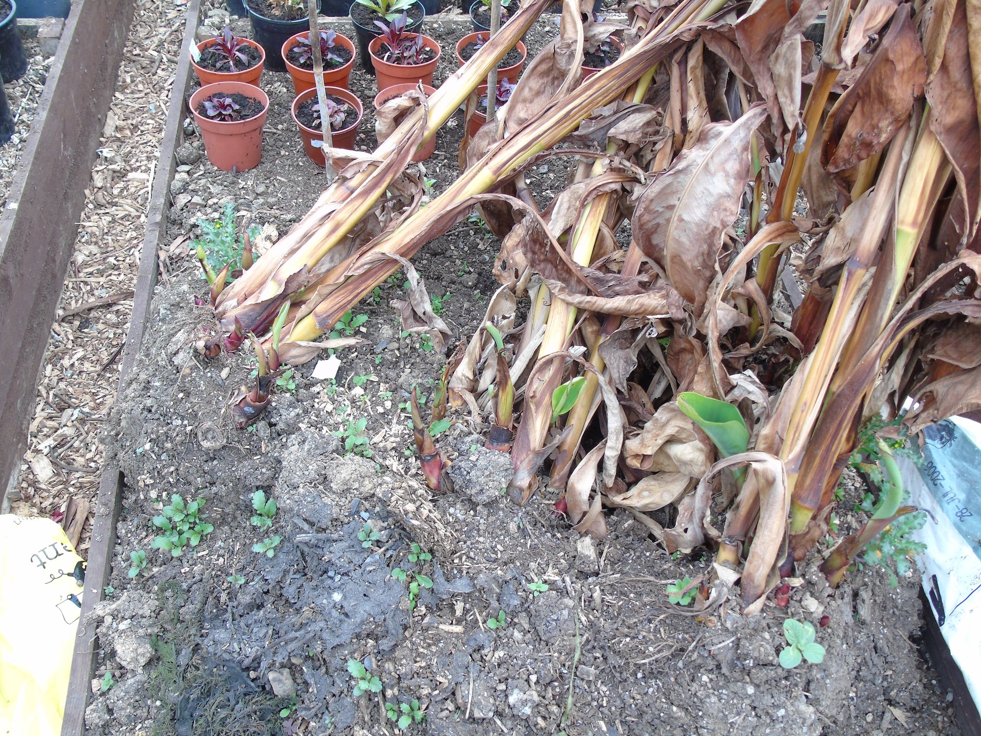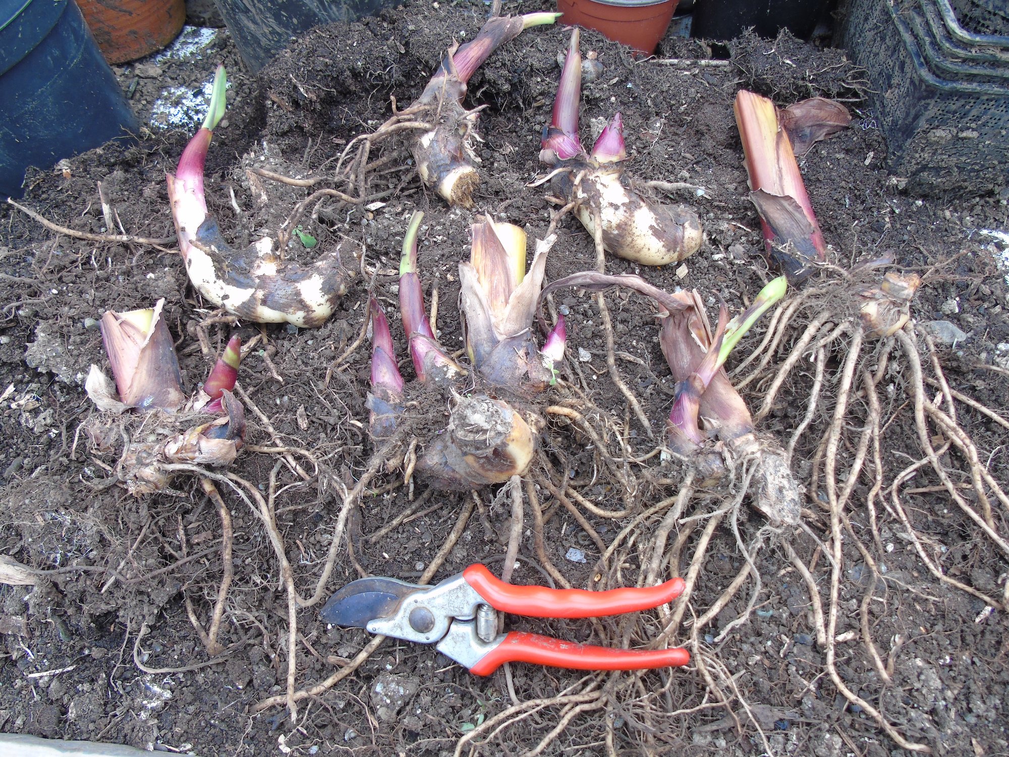 I have to say, I bring mine into the polytunnel. You can see where I cut the clump with the spade when I dug it up in Autumn. It's not the cold here, but the sodden wet Devon clay soil. Empress Wu is FAB.