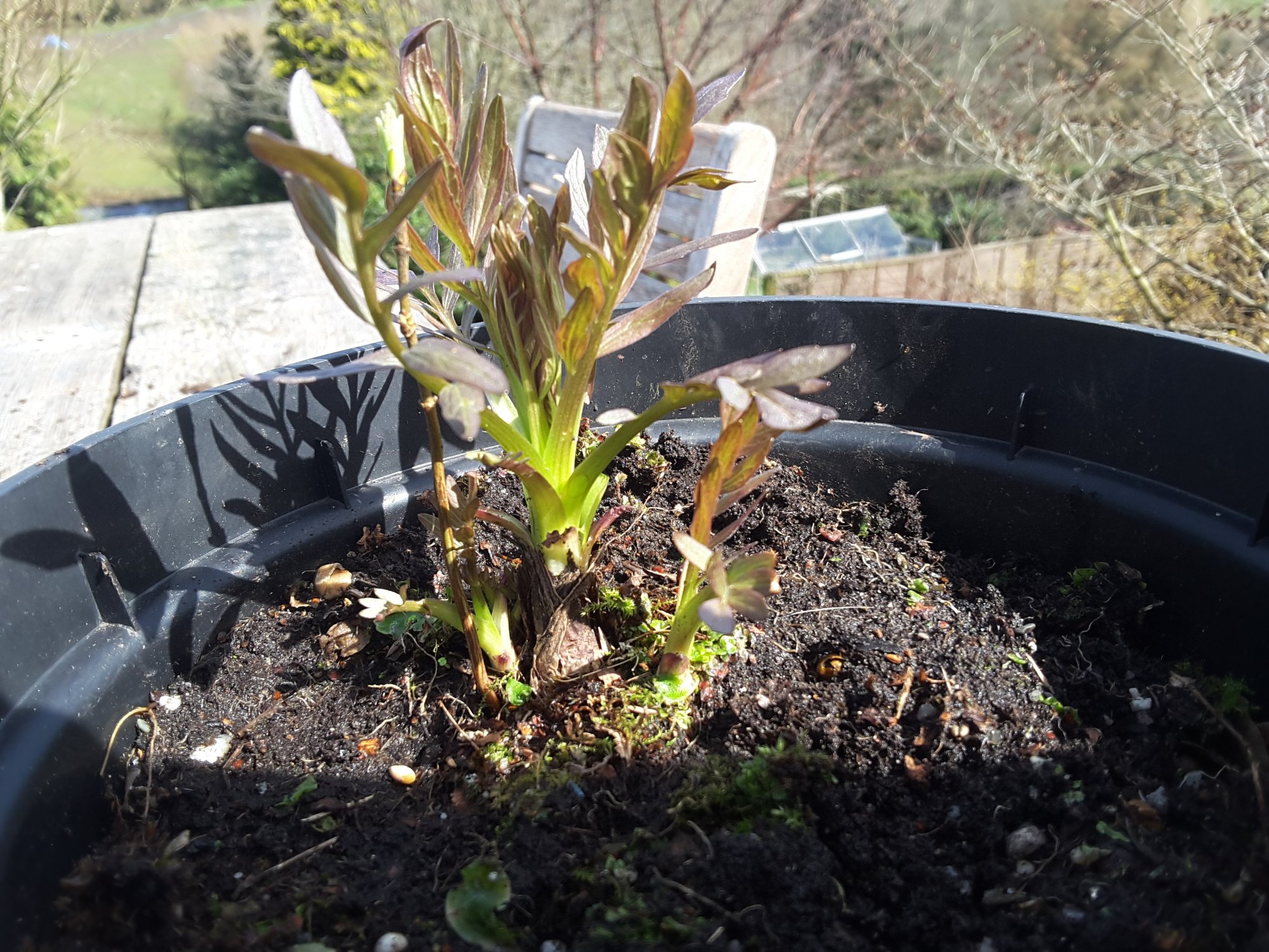 Could this be valerian? I looked them up and all seem to be green not the copper brown. I found the pot abandoned in my invisable pile behind the greenhouse and my cat went diddly bonkers and tried to dig it out and eat it! No idea where it came from. Thanks in advance!
