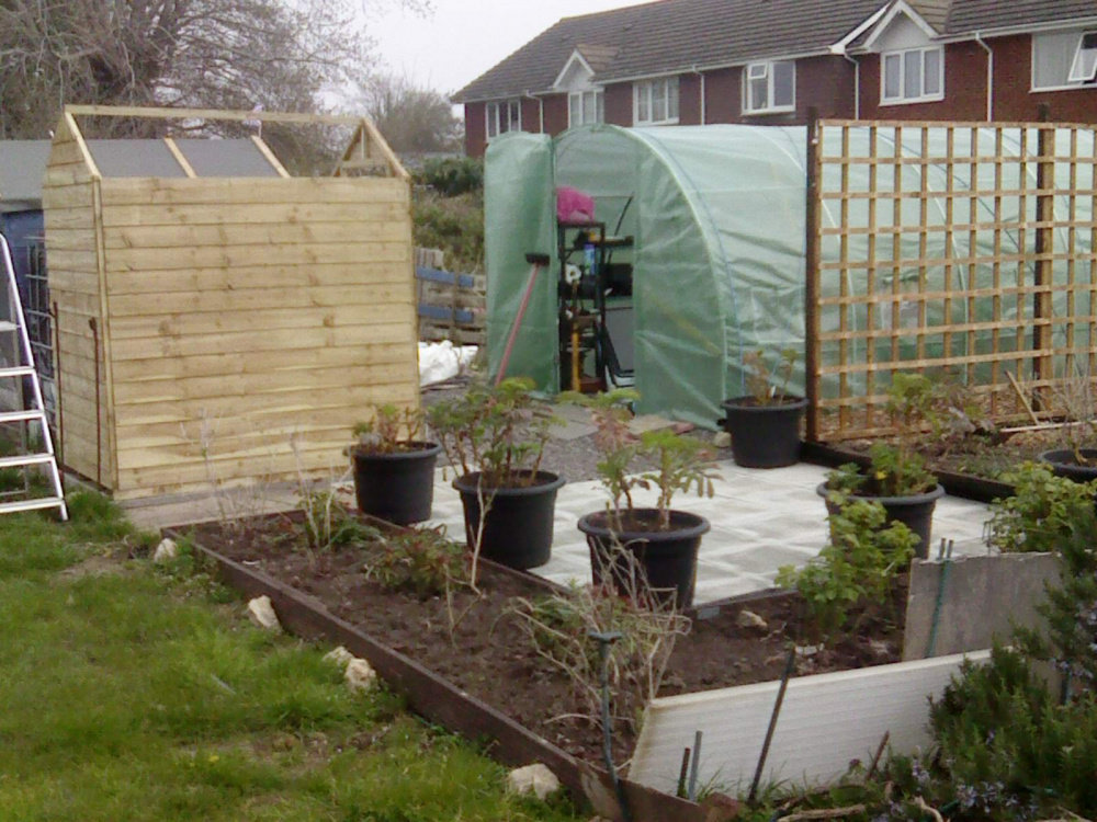 This is my plot and as you can see I have hard paved area a large poly tunnel and gravel paths, the rules say one shed no bigger than 8 ft x 6 ft and a green house or tunnel of the same size I have two sheds and the tunnel is 20 ft x 12 ft approx all with the written permission of the council. so not so much rules as guide lines