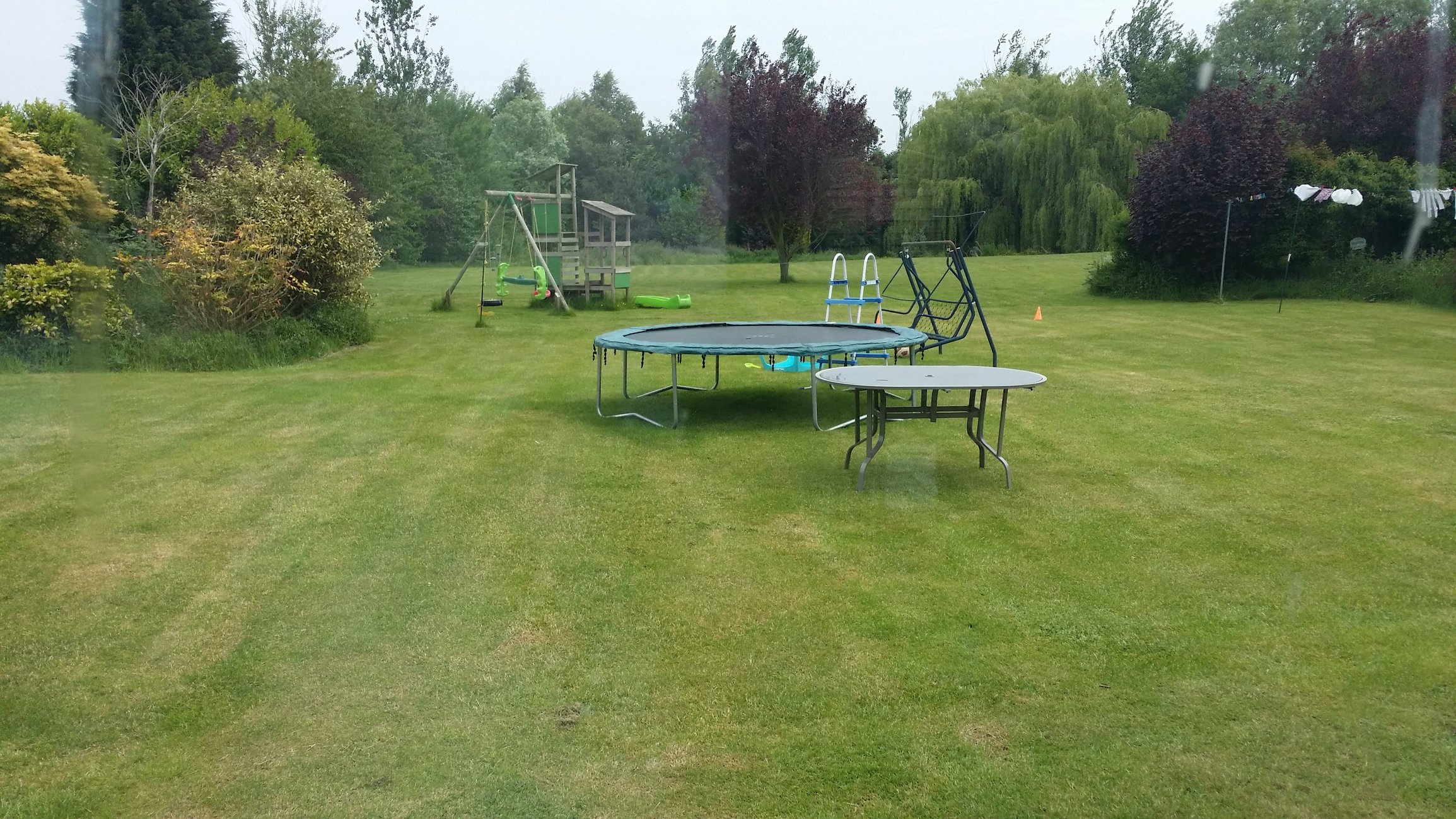 this is summer 2015, the orchard and the 'market garden' area are off to the right, behind trees/shrubs etc and the pond is down the bottom near the weeping willow
