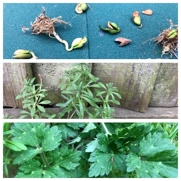 The bottom two are in an area I seeded with lettuces one year, and wildflower another year. I think the bottom most one might be parsley?