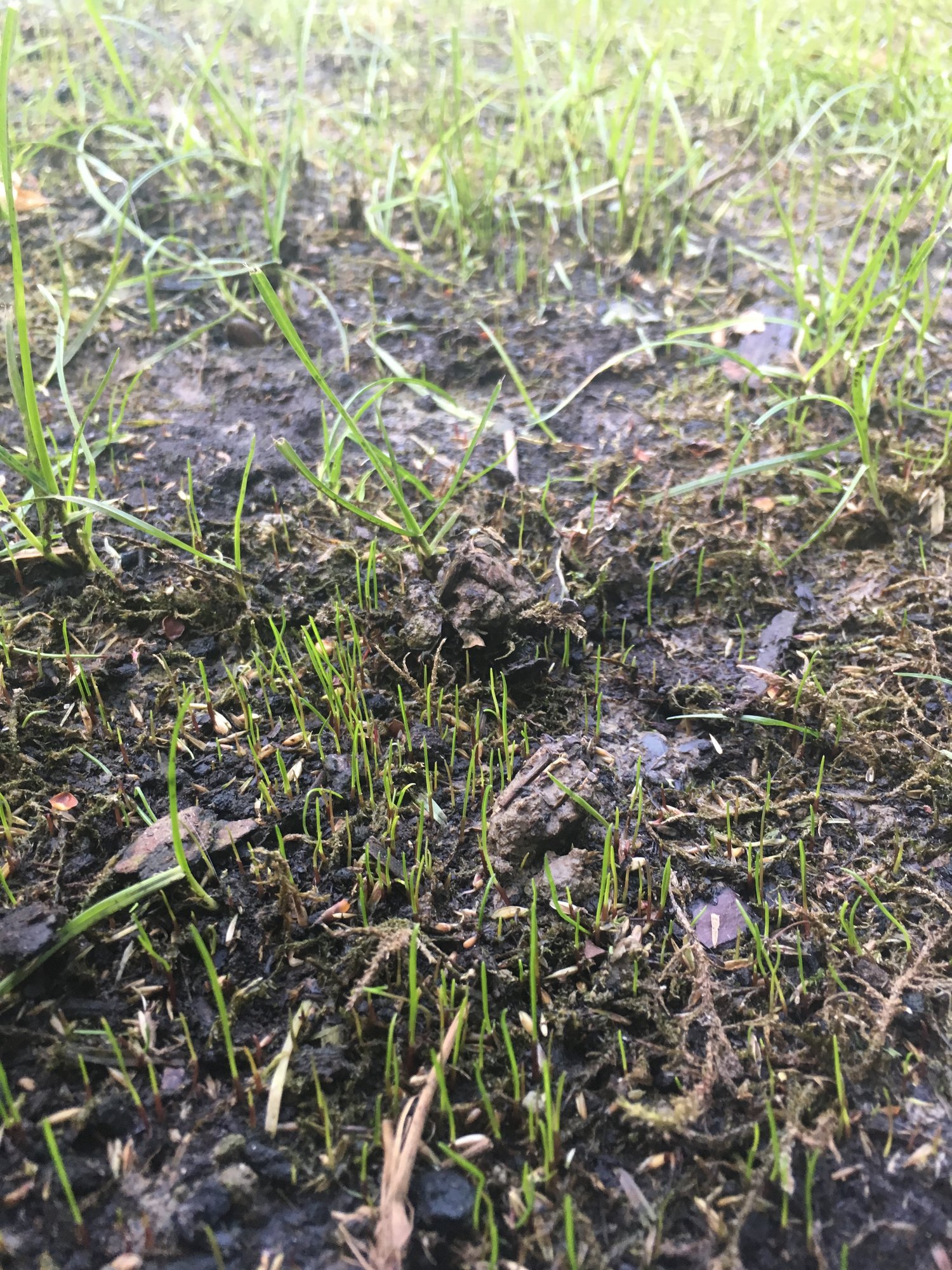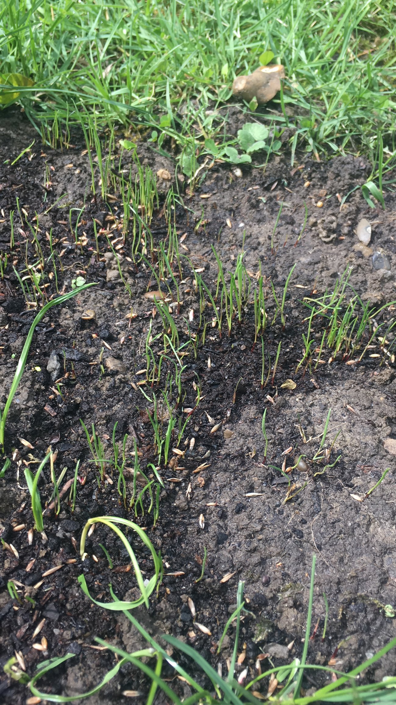 Hi everyone! I wanted to update you on my lawn... so after preparing the soil, feeding it lime and fertiliser, i also threw on some grass seeds (only in certain areas to test the result) then added compost as suggested and soil, i aired it and chased off hungry birds (no big thanks to my lazy cats..) and ... incredibly, grass is growing!!! Im so happy, i was almost loosing hope!! What should i do now? Just let it grown naturally or compress the soil to further reinforce the roots? thanks a lot for the help! :-)