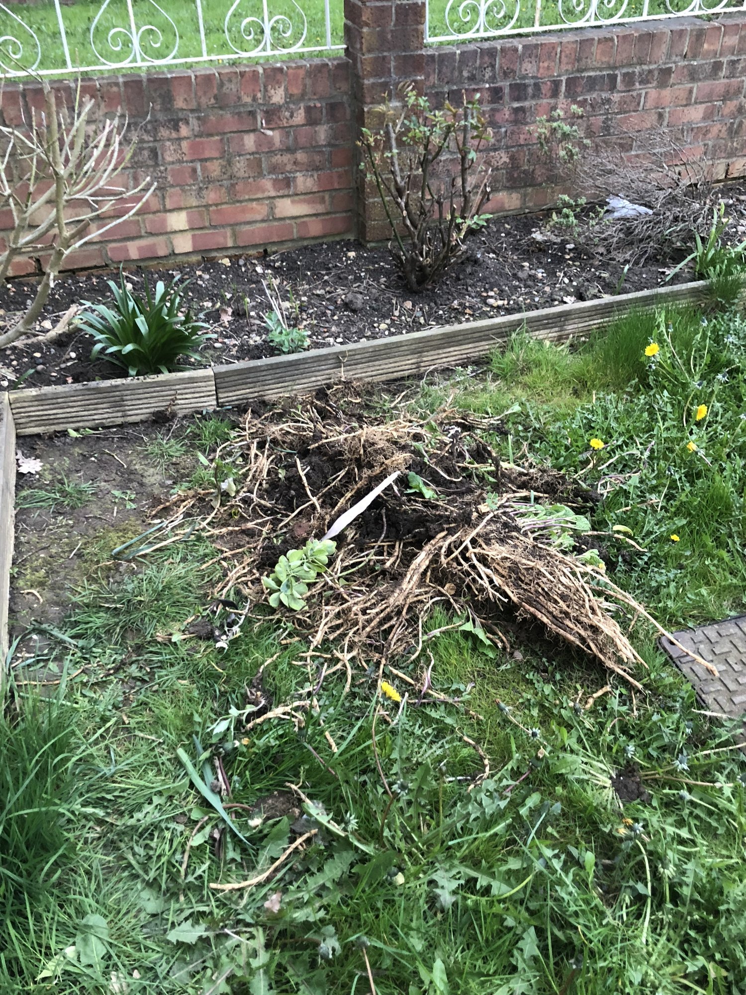hi all, can anyone tell me what this is growing along my wall please? Noticed it day or so ago, only been in the house 6 months so not been in the garden much. Started digging it up today before deciding I should probably identify it first to make sure I’m getting rid of it properly. Thanks in advance.