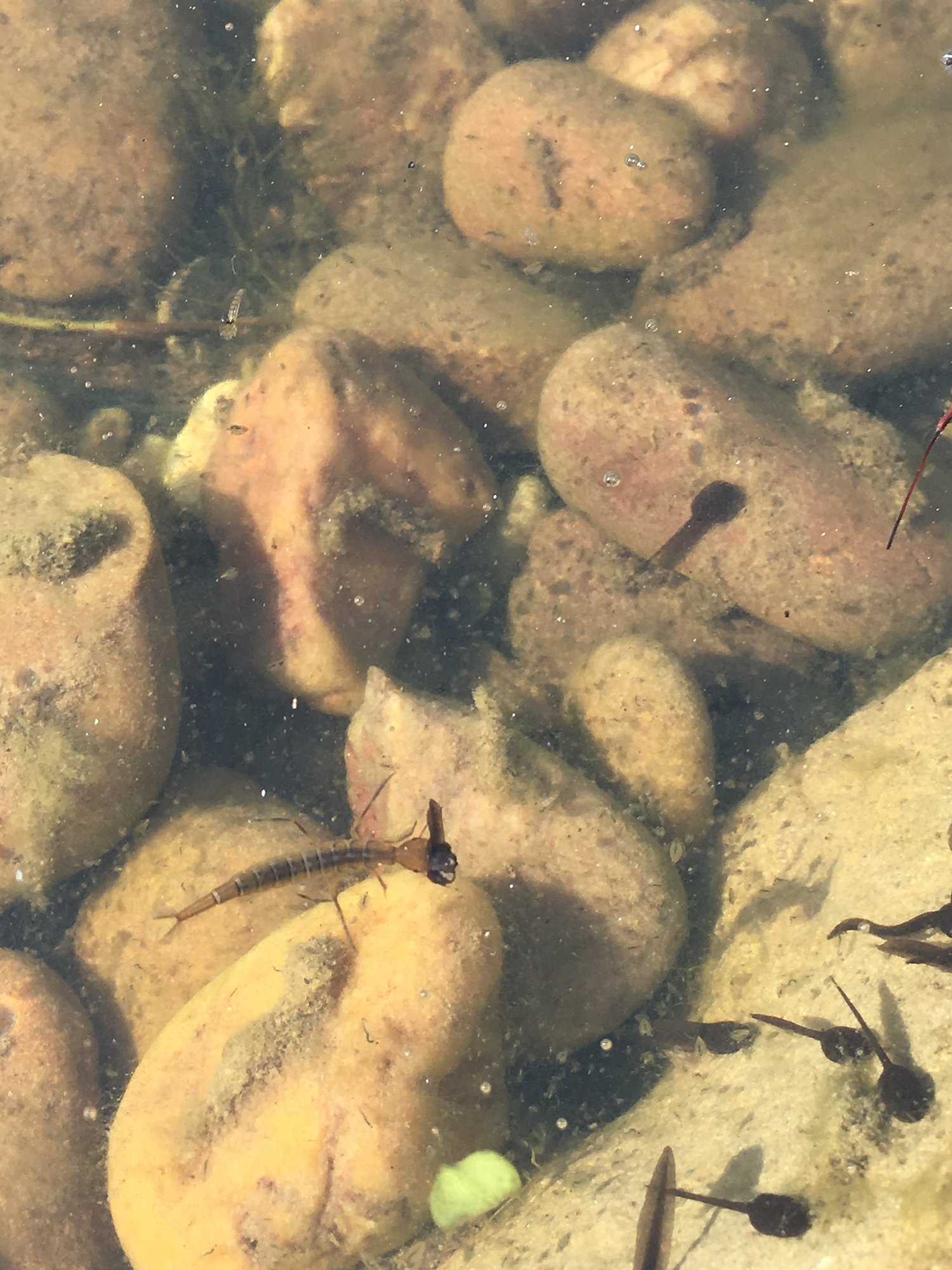 Staring at the taddies this morning and ‘bam’! Had my phone in my hands ... I only dug the pond in November so larva must have come in on plants, so pretty new. Damsel or Dragonfly? 0
