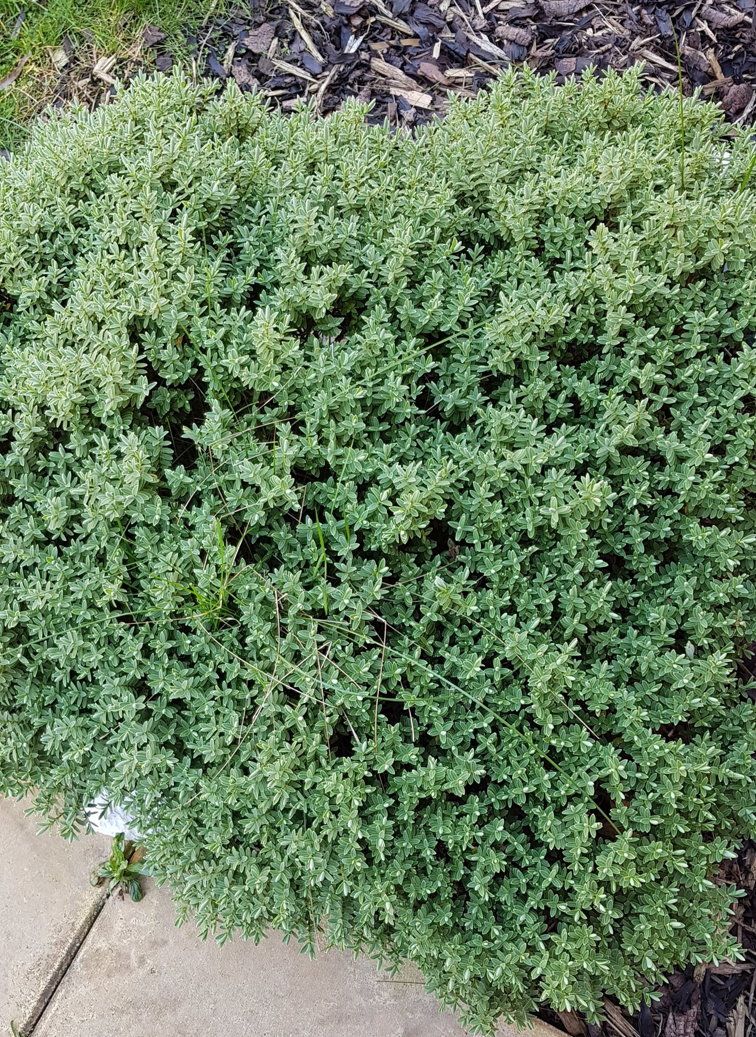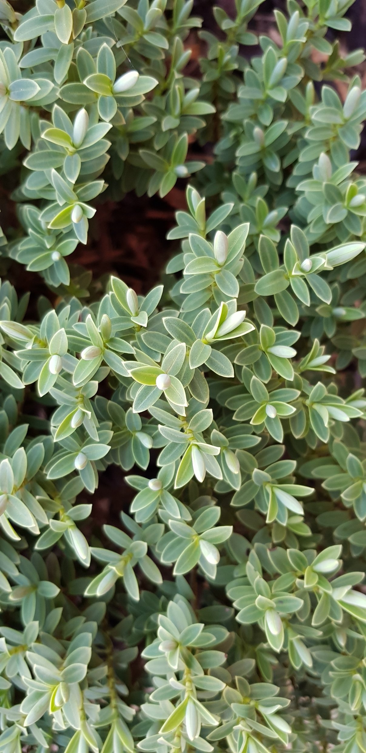 Hebe. The problem with moving them is that the bit in the middle will become the outside of each indvidual plant and will be bald/brown. I'm not sure that they respond well to hard pruning so that bit might stay bare. Someone else may know different.