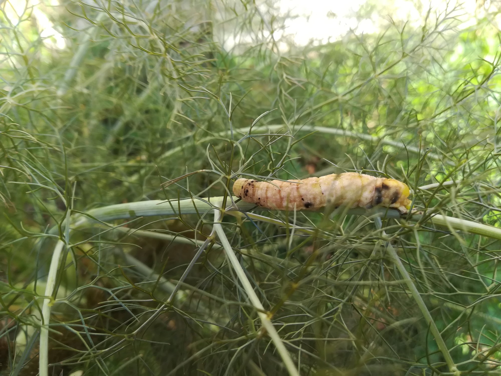 Any know which butterfly or moth this might be plz? It is on bronze fennel. Looks a bit like it might be pupating.