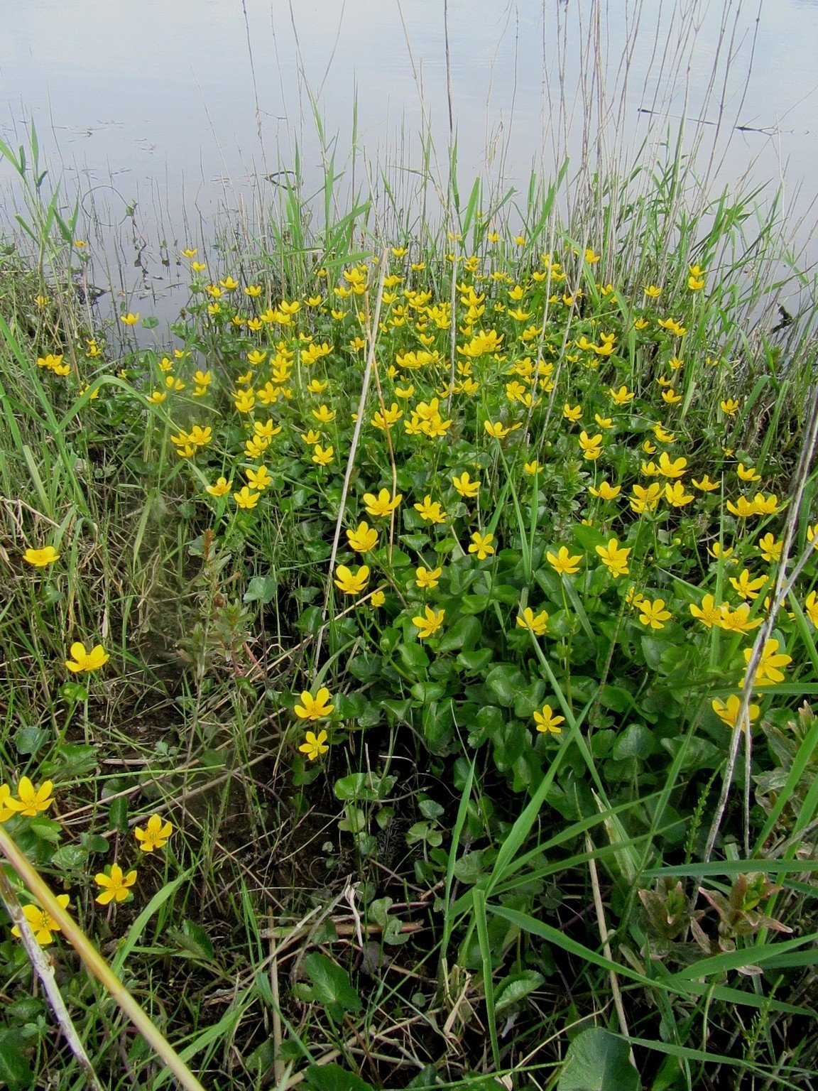 I have added a plant to my garden,..which was growing in the wild be it a weed/water plant i never bothered to check as i like it,..Lesser calandine 'Ficaria verna',..it has a bloom the size of an average cup diameter,..i added it last summer and it has bloomed this week,..i will keep it from spreading and treat it to lots of moist soil.