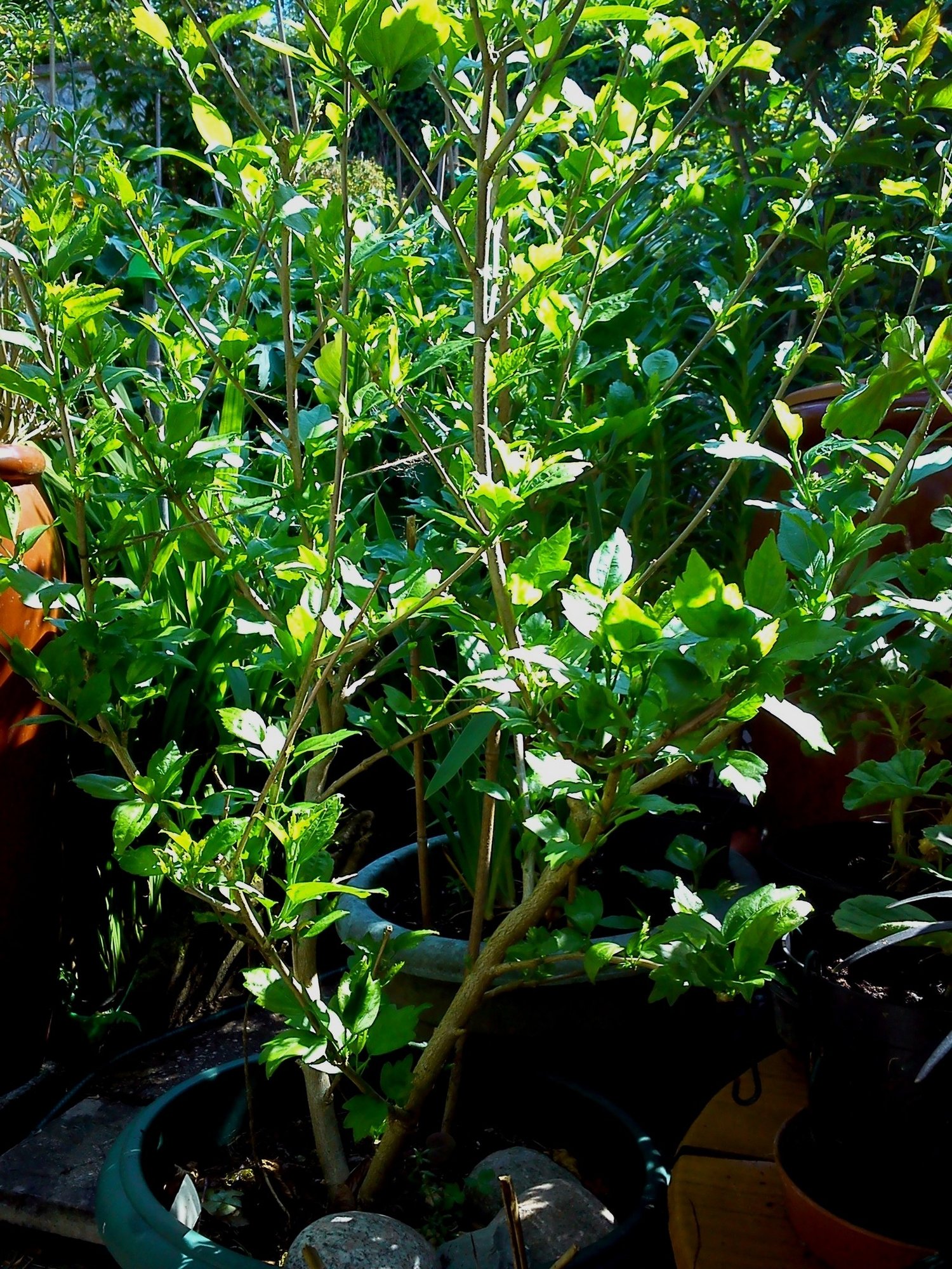 My Hibiscus 'Woodbridge',..looking very healthy despite the bad winter.