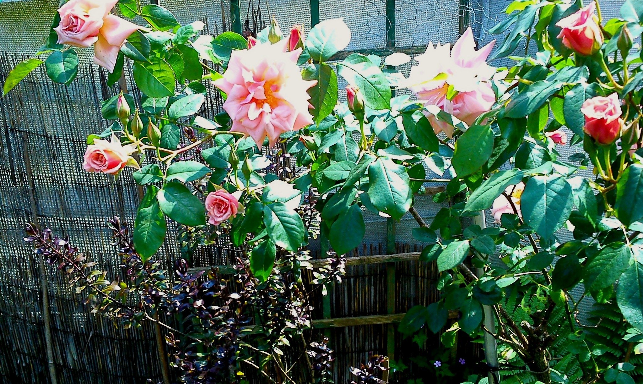 There are about three dozen rose bushes in the garden,..many from cuttings where the parent plant was not tagged,..some from seed though never given a name,..two nameless below.
