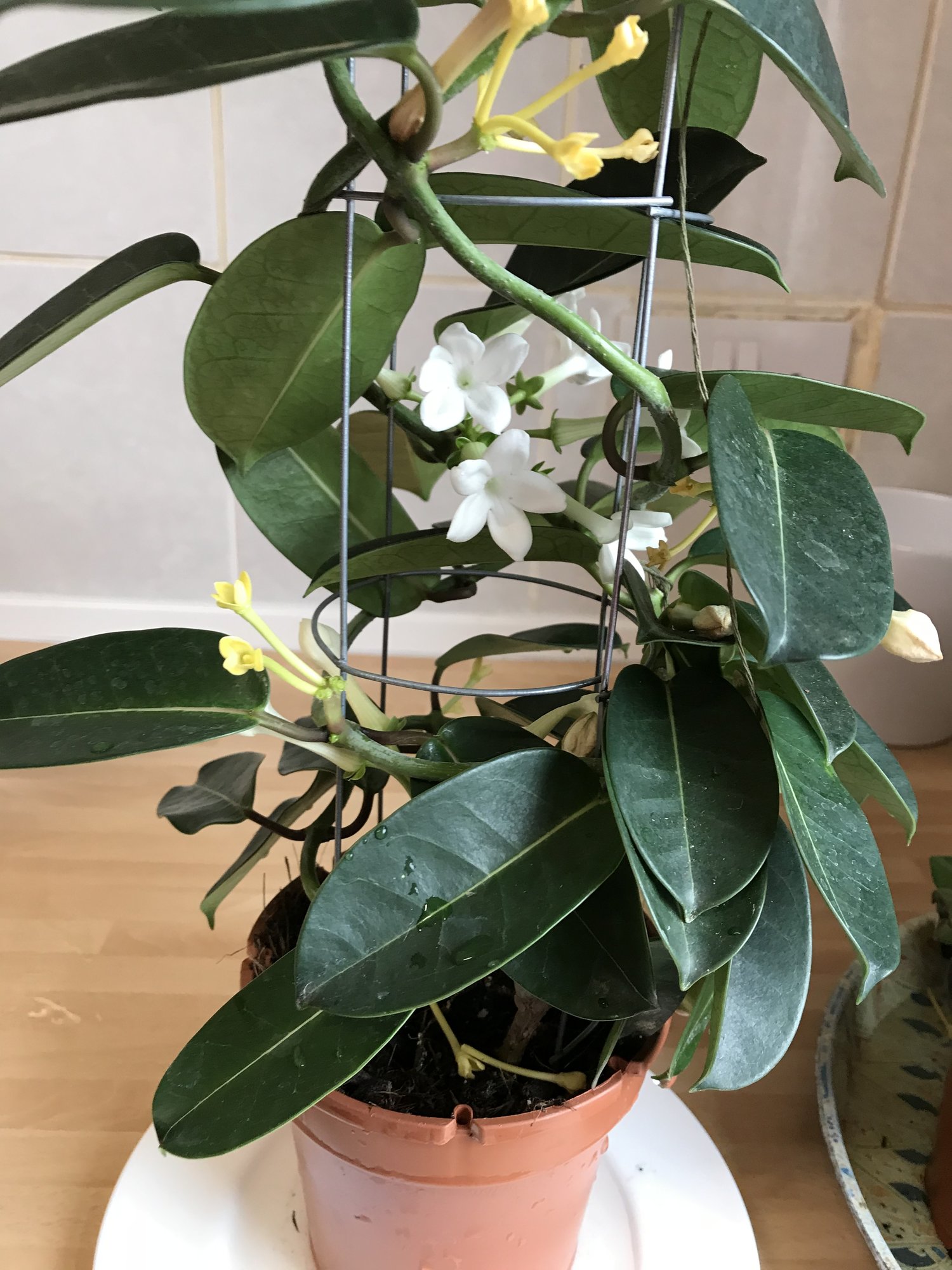 hi all, I’m fairly new to plants etc.. I bought a jasmine plant a few weeks ago but it appears to be dying on me already. It came in a ceramic pot so I’ve taken it out today as I’ve read on other forums that it needs to breathe and that it helps to see if it needs watering or not. The flowers seem to be falling of at the slightest touch or movement. I’ve been placing it by the window in indirect sunlight for 6-8 hrs a day as advised on other forums and have made sure I’m not watering it too much or too little - ensuring the soil is moist to the touch. I’ve attached a photo so please offer your suggestions to help me bring it back to life!many thanks