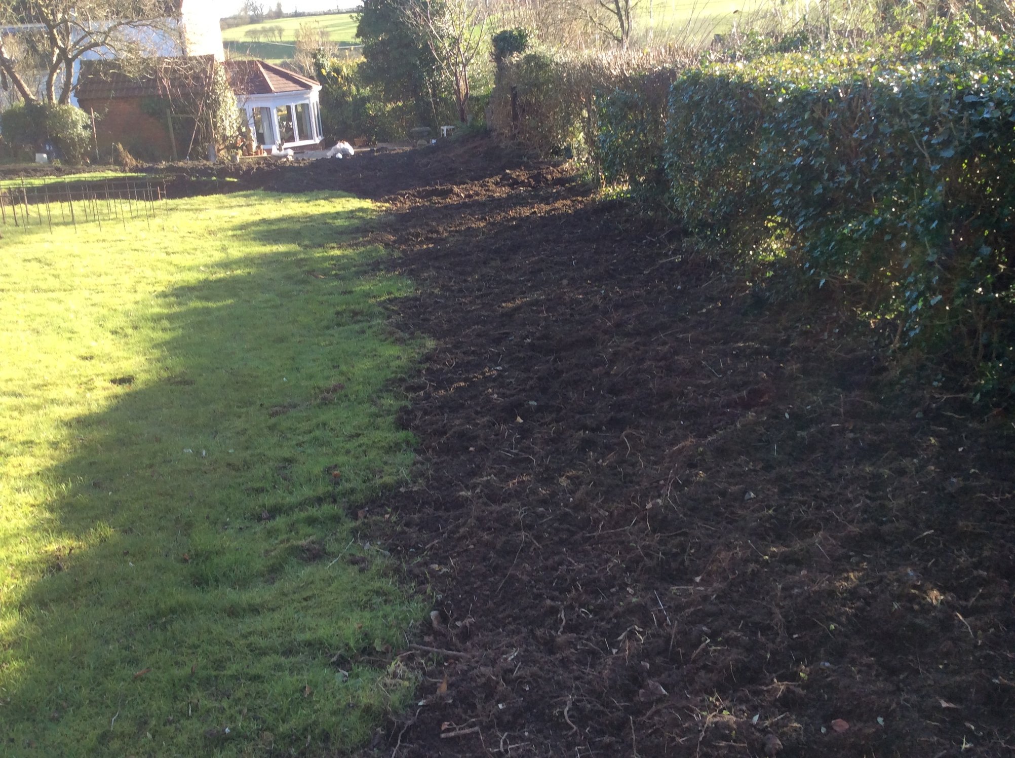 Every day from January to early March one worker was on site, sometimes two. The planting and minor additions were done over a few days about 6 weeks later. These pictures give an idea of what was done