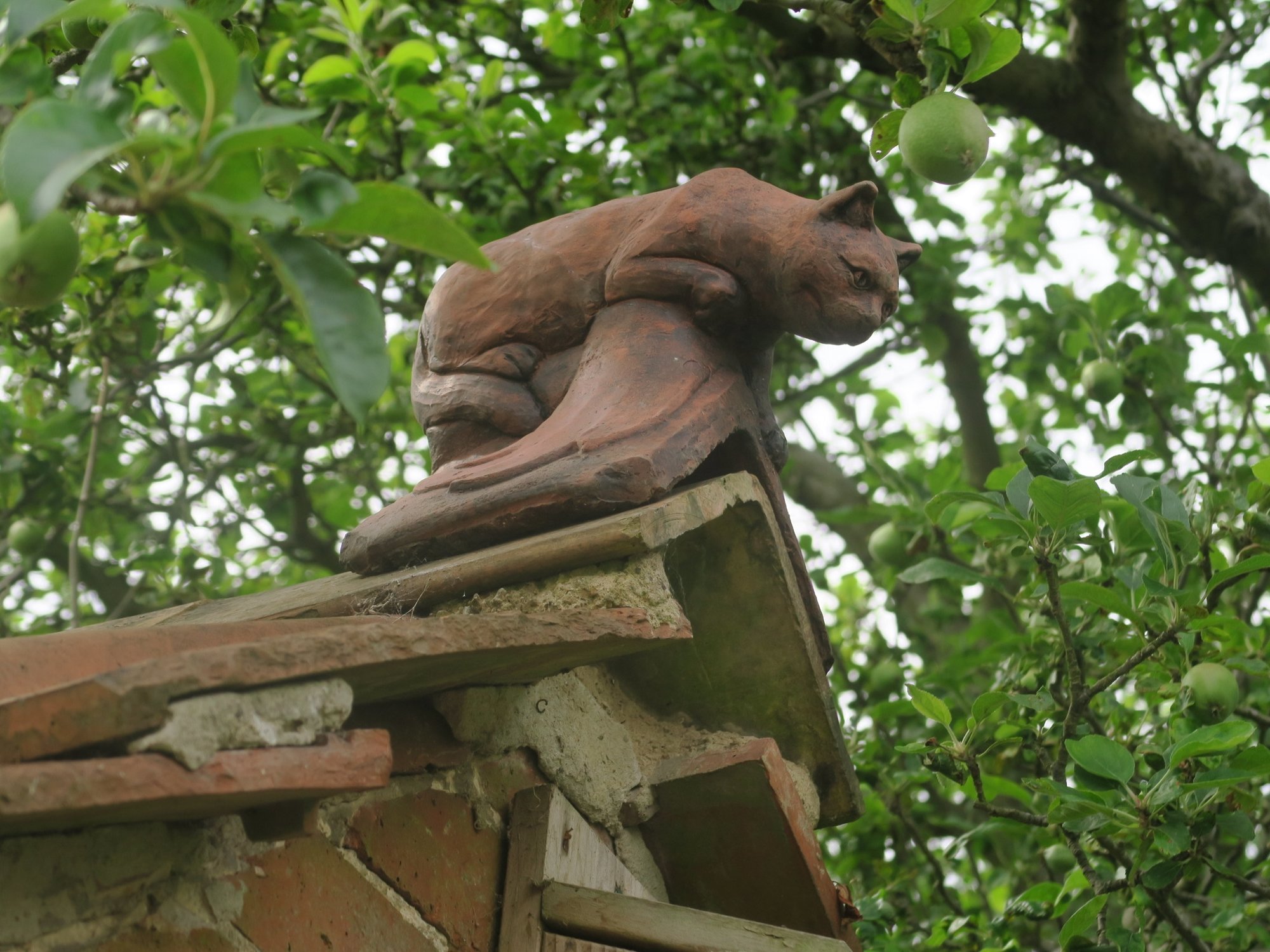 Cat guarding the brick shed