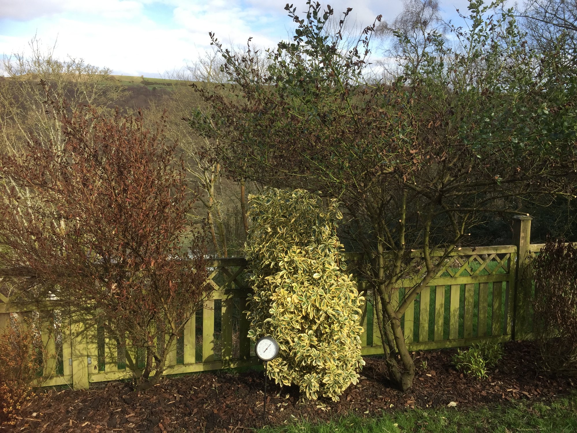 I was tempted to cut it down to that point, but I know ceanothus hate pruning so I will leave it. If it still looks shabby in July I will take it out. The reason one is doing better than the other is that one gave the other some shelter.