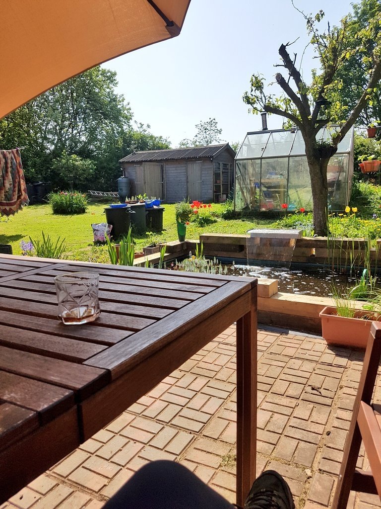 We have just dined in the garden. Son made a load of Tapas well washed down with alcohol. Was 28° in the shade earlier today.