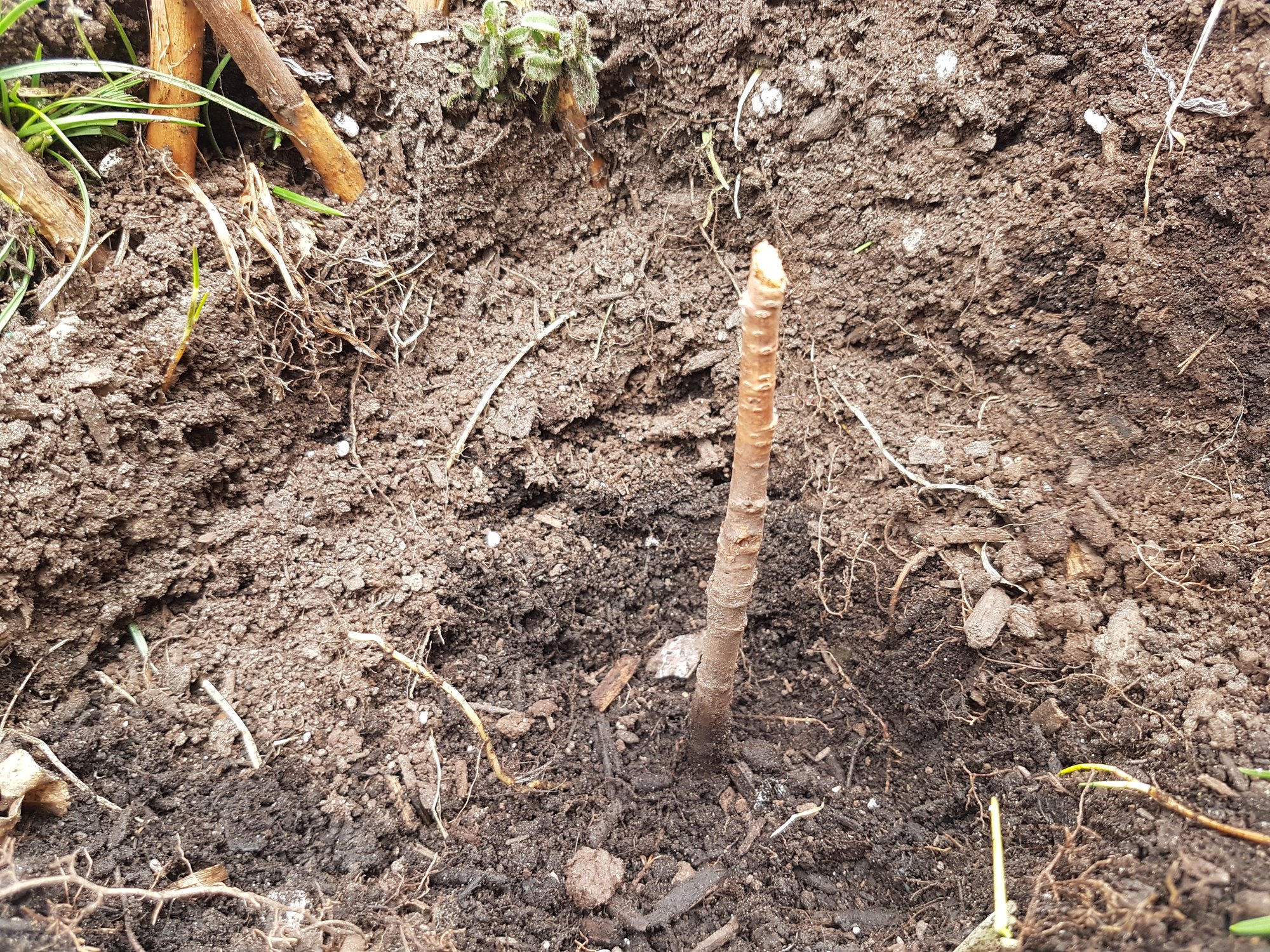 Hi. I live in Toronto Canada. Last year I bought 1 years old cherry tree. I kept it in pot for 3 months and it start to grow and had new branches . I planted it to the soil and it is on soil for 1 year. When i planted in the soil leaves started to fade. Recently i saw some animals attacked it and ate its branches. I attached picture of it . So if someone can help me to can i recover it or no. It is 2 inches high. Thanks 0