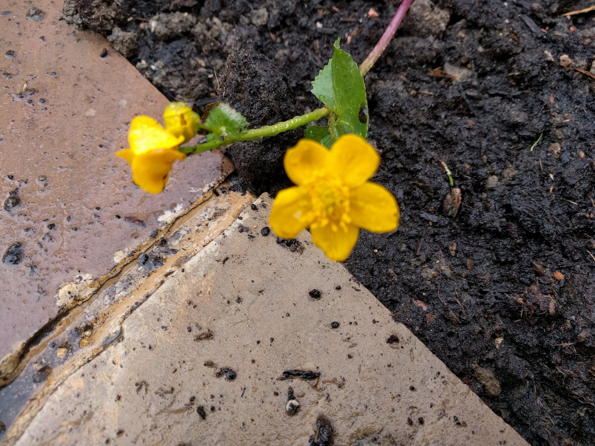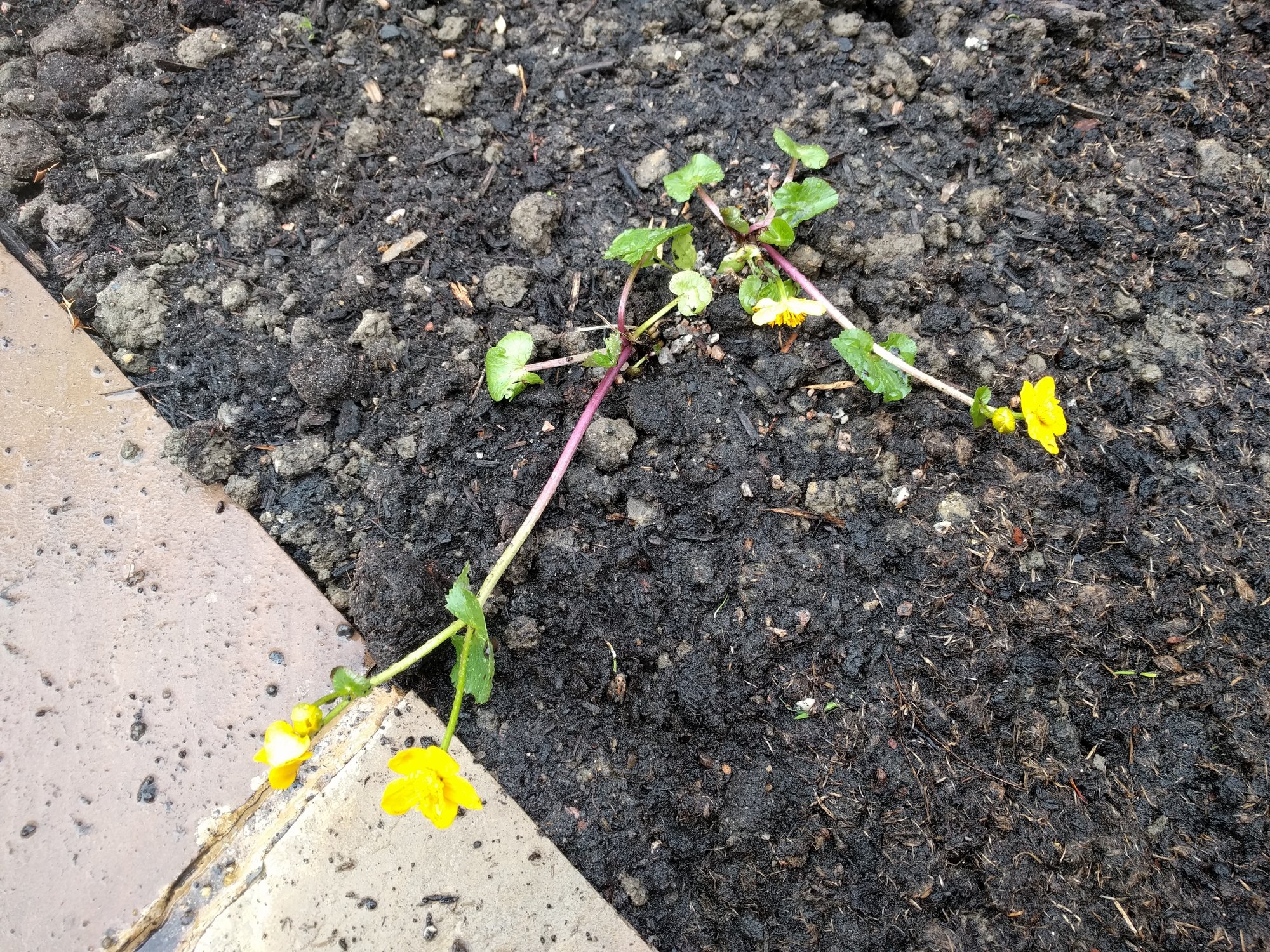 ImI 3/4 of the way through a big garden project. I bought a few plants over the years thinking I was going to start and they've been sat in a corner for a while, still in their plastic pots, Marsh Marigold included.