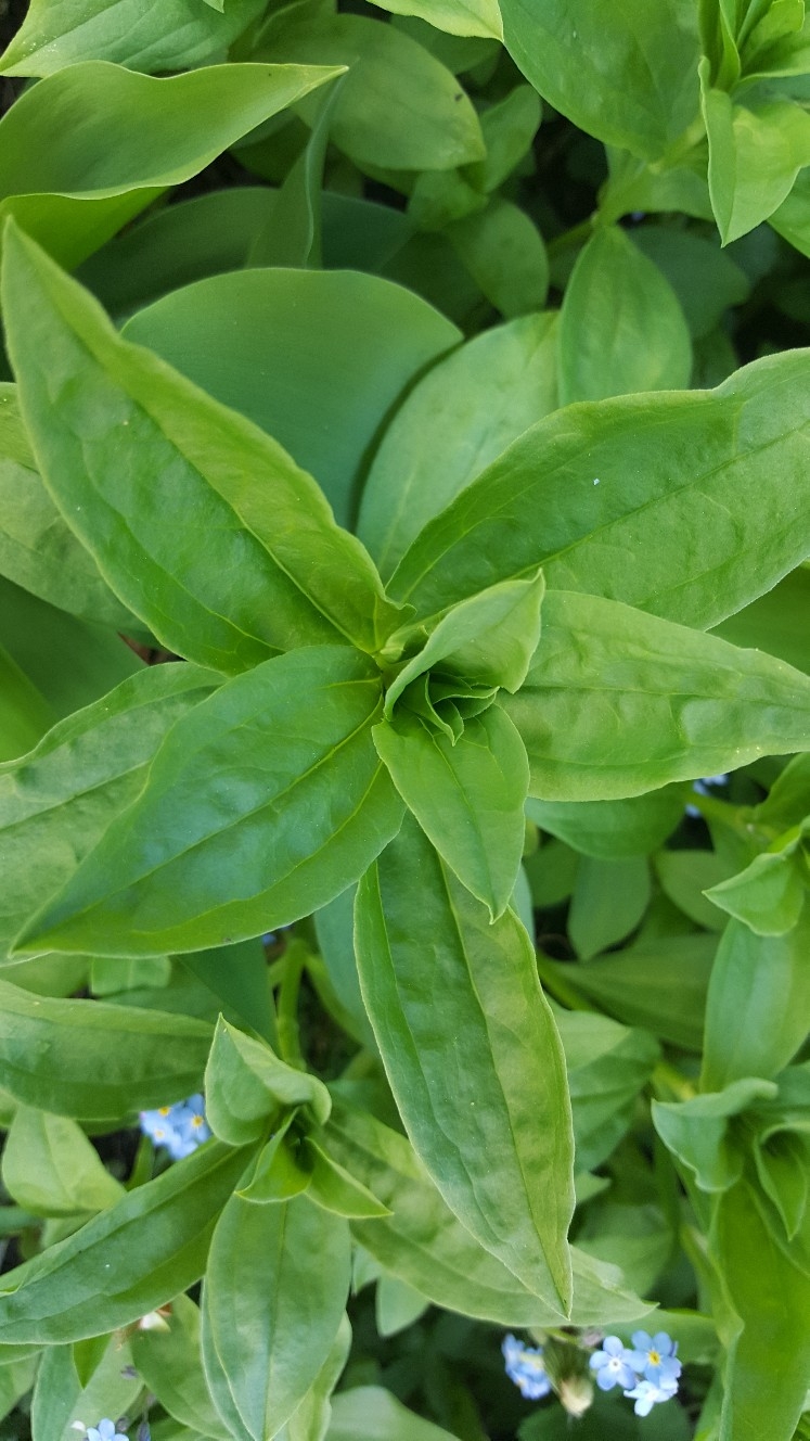 There are some Lily of the valley growing in between, which are the larger smooth leaves.