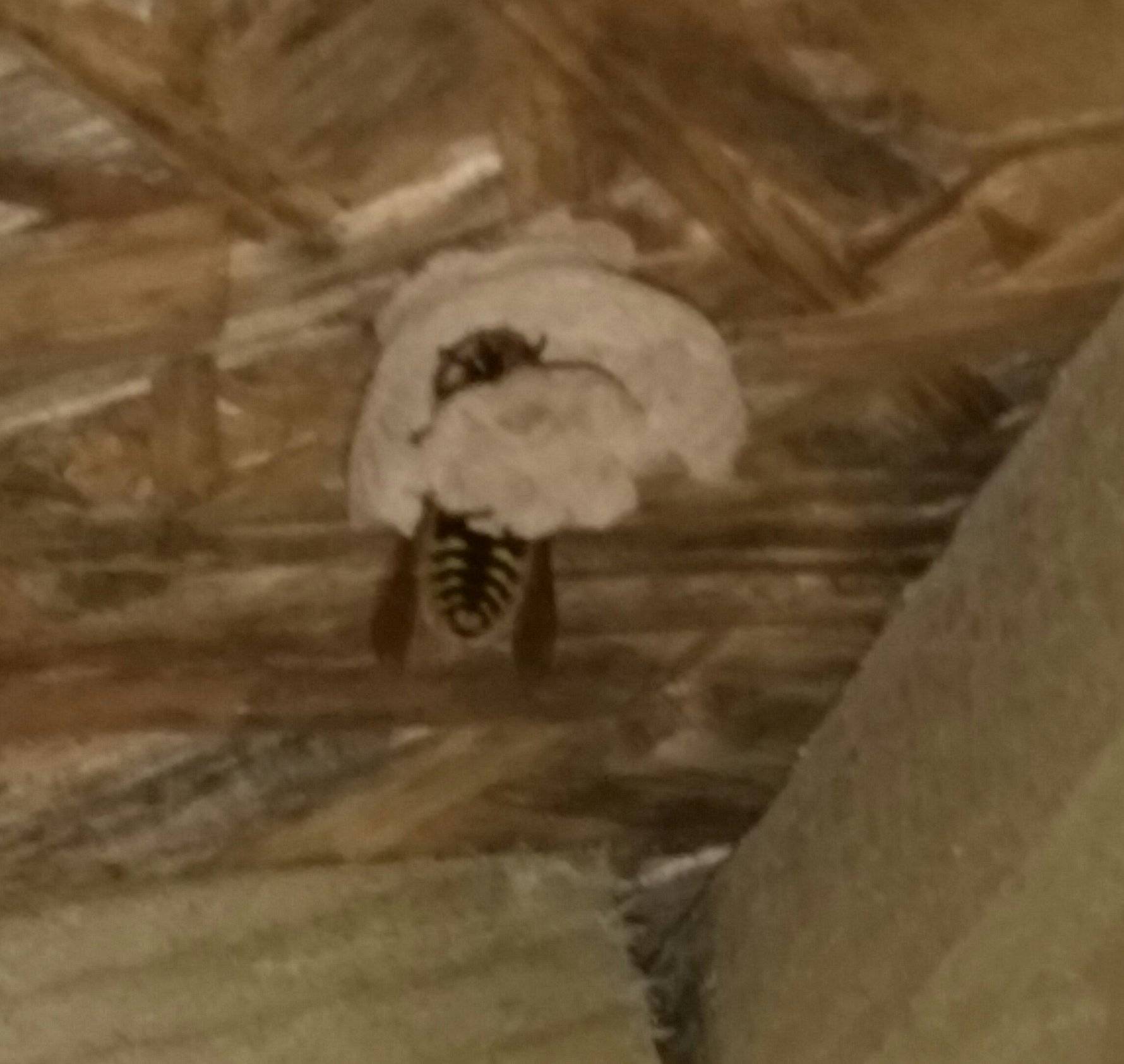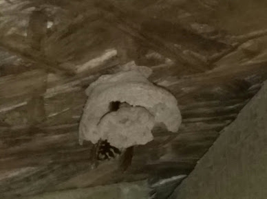 Tidying away for the day and noticed a little wasp nest in the far corner. On closer inspection, she's actually busy in the process of building it. Will leave it for now unless it becomes a problem.