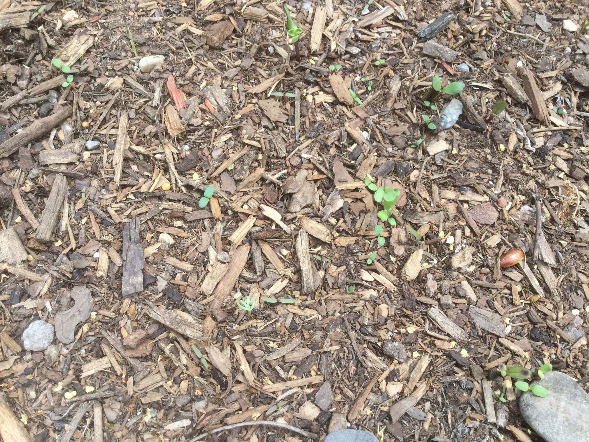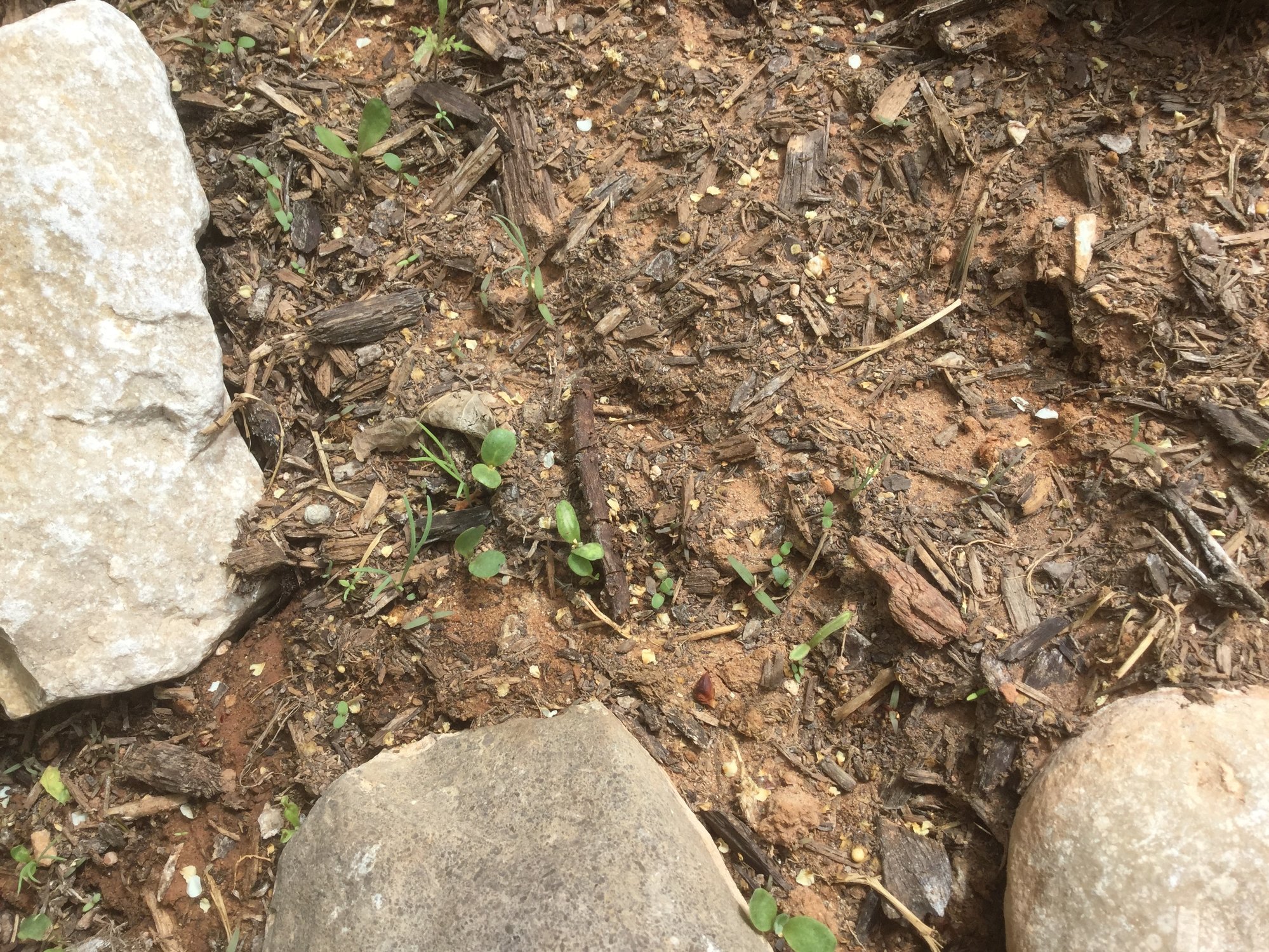 My son and I have created a perennial pollinator garden by mixing together several packets of pollinator seeds with a few handfuls of sand and scattering them across the soil. Two packets were about eight years out of date, so I wasn't sure how germination would go. Well.. it looks like everything germinated.. so now I have a bed full of seedlings only about an inch apart from each other. Of course I threw away the empty seed packets, and can only identify a few of the young seedlings.