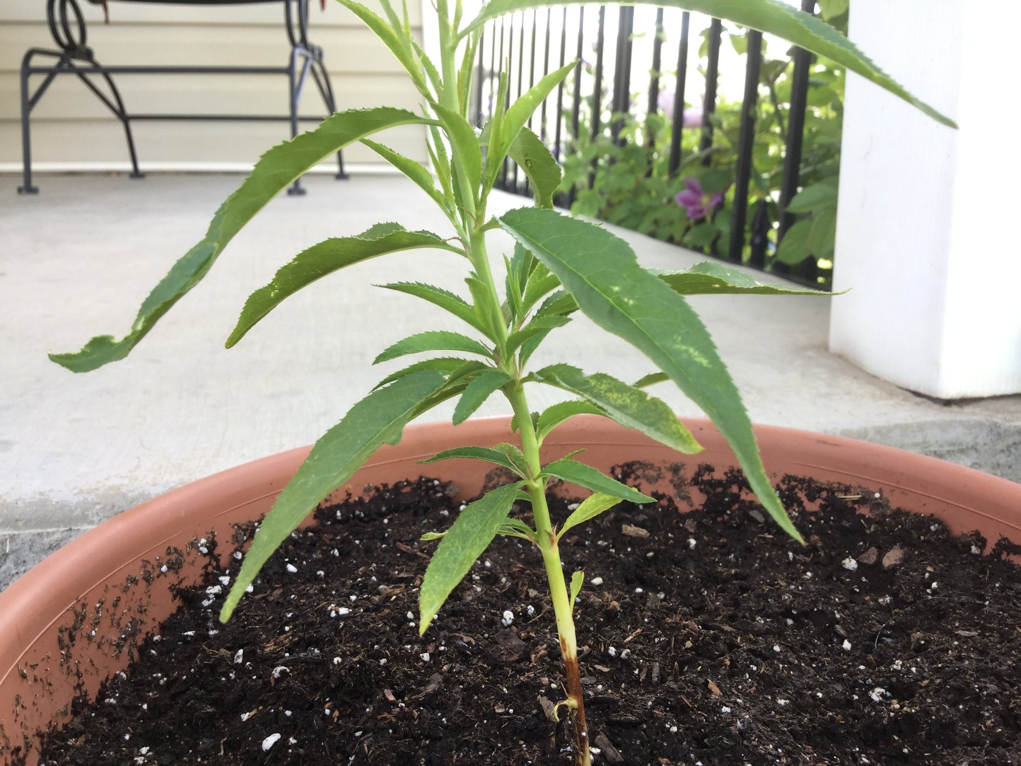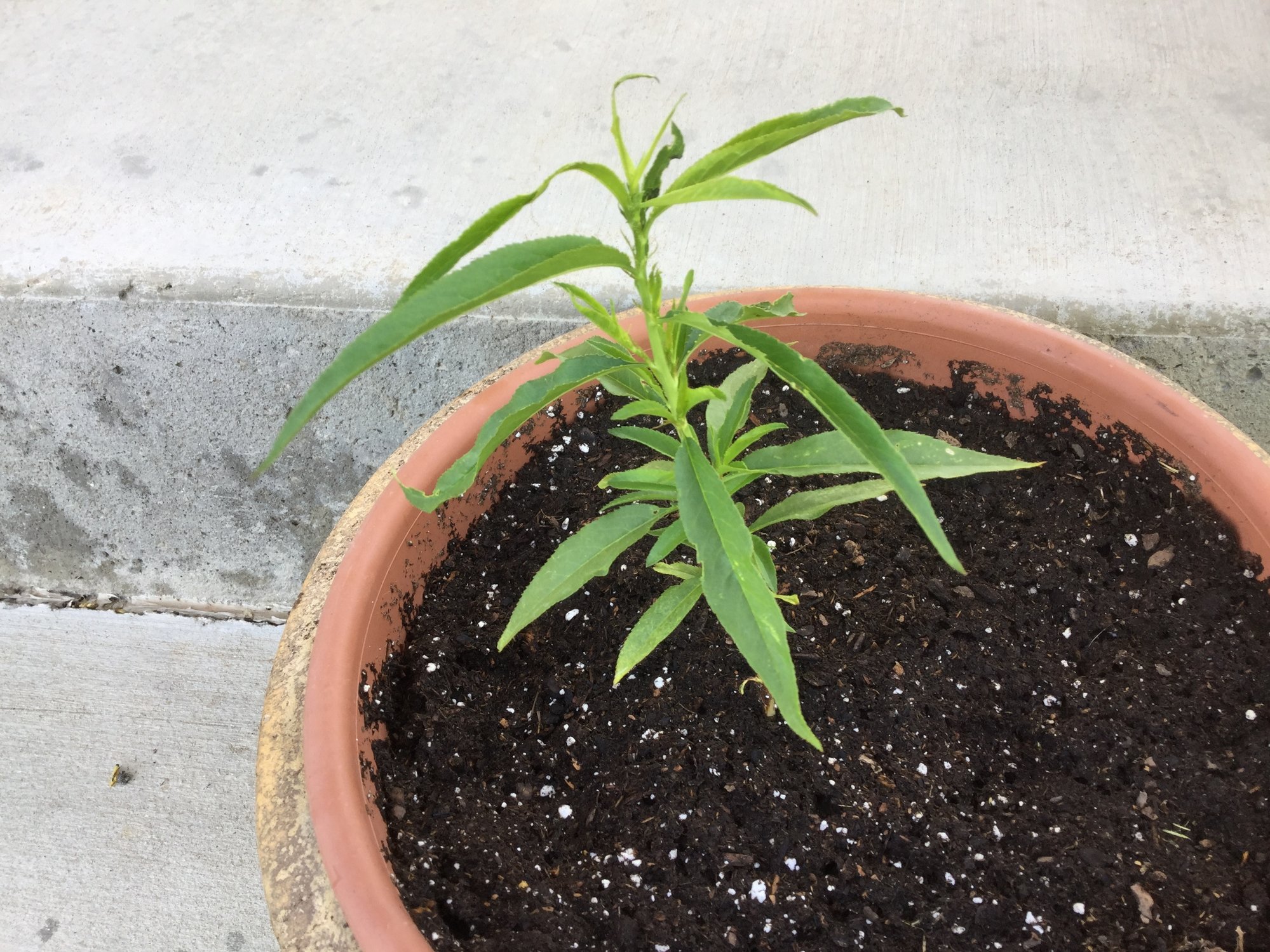 This was growing up out of my compost trench.. what type of tree seedling is it? The stem is quite woody already.