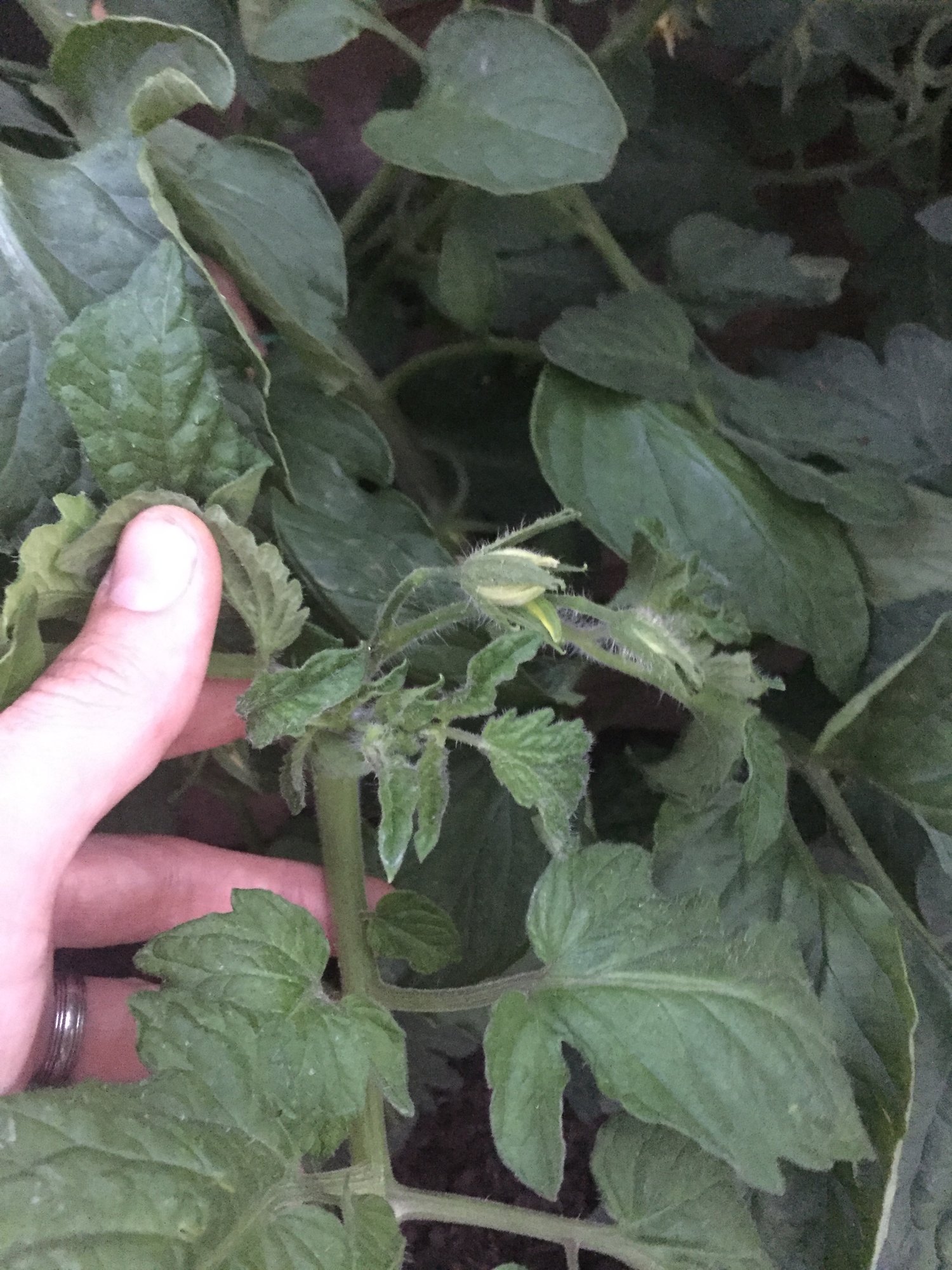 A couple of plants have done something a bit odd. They’re at 12-18 inches and most have put out their first flower truss and kept going, two of them have made a single big flower and the growth tip seems to have gone.