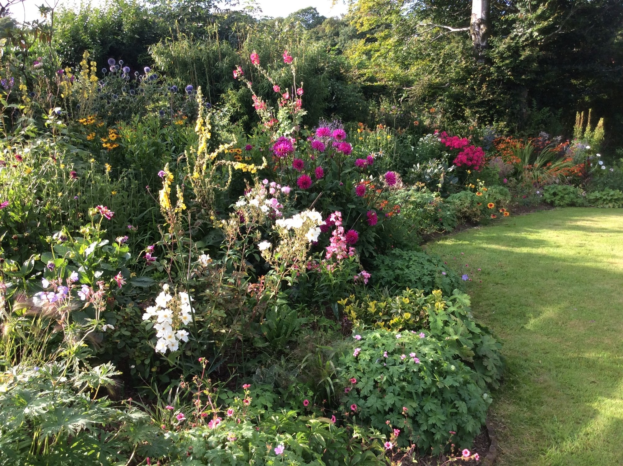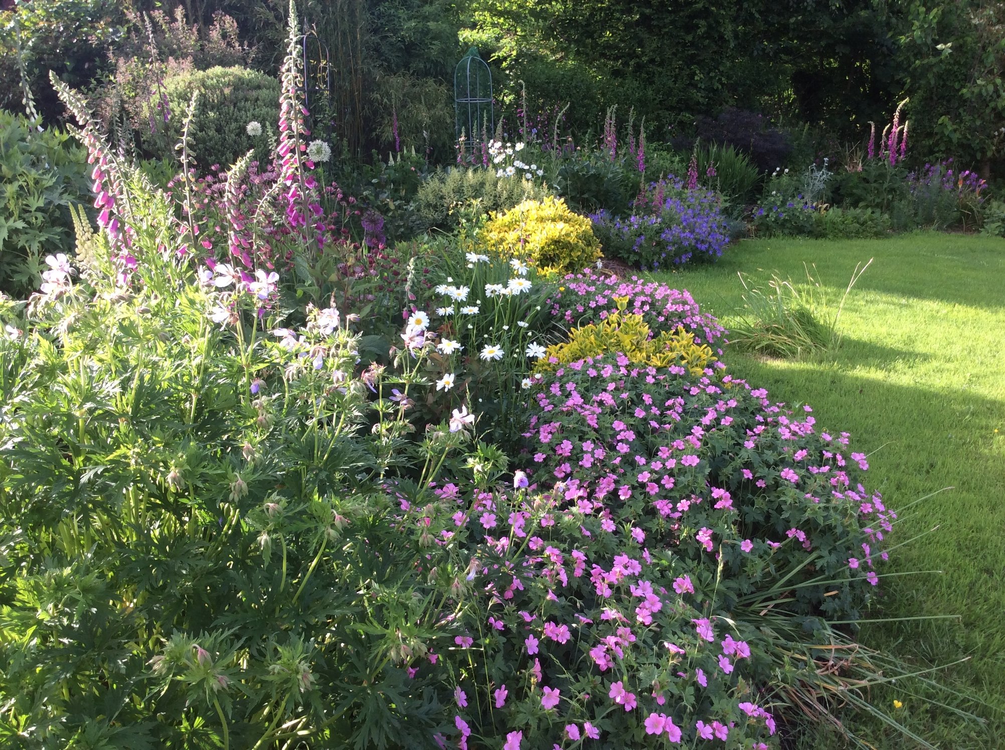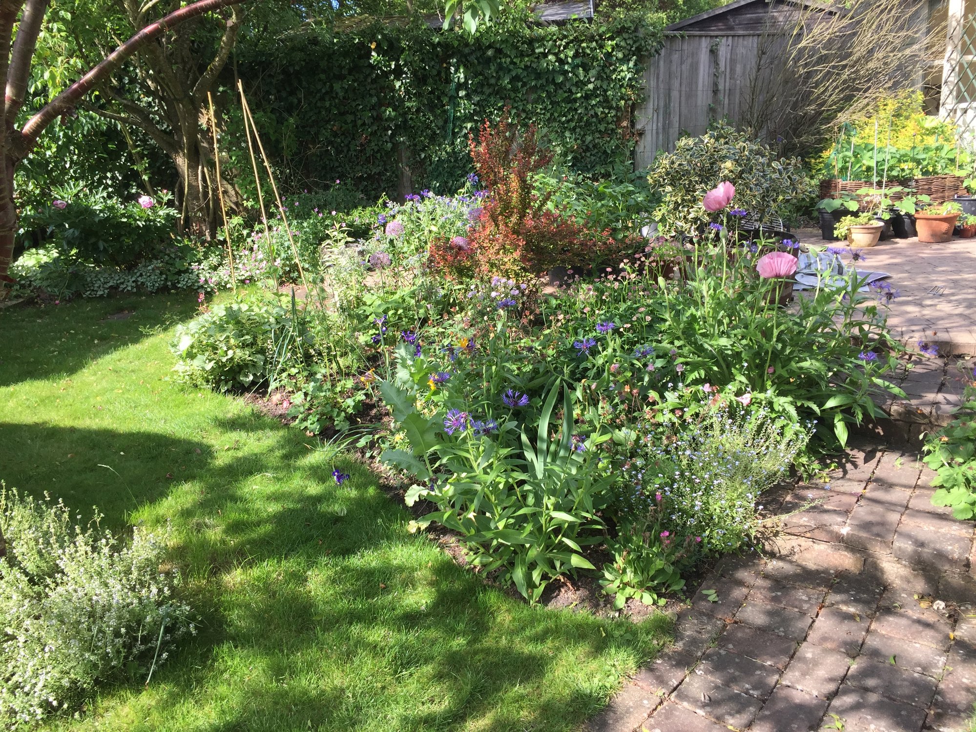 this is today, there’s still delphiniums, sweet peas, Clematis and lupins still to come, but by July/August it changes into different colours,.