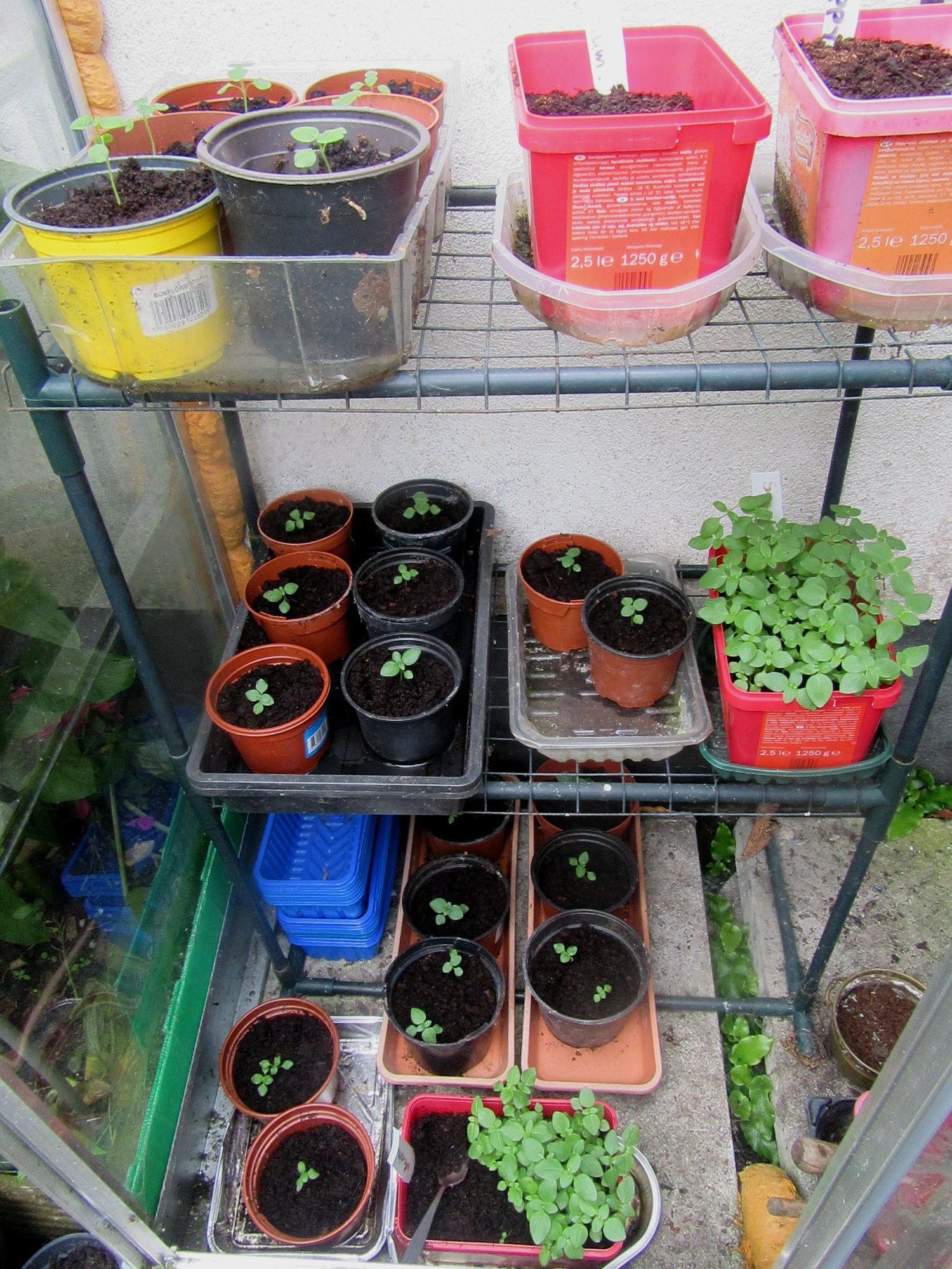 Below is half of my small greenhouse,..the images captured yesterday,..sort of getting full,..the seedlings are from those seeds collected.