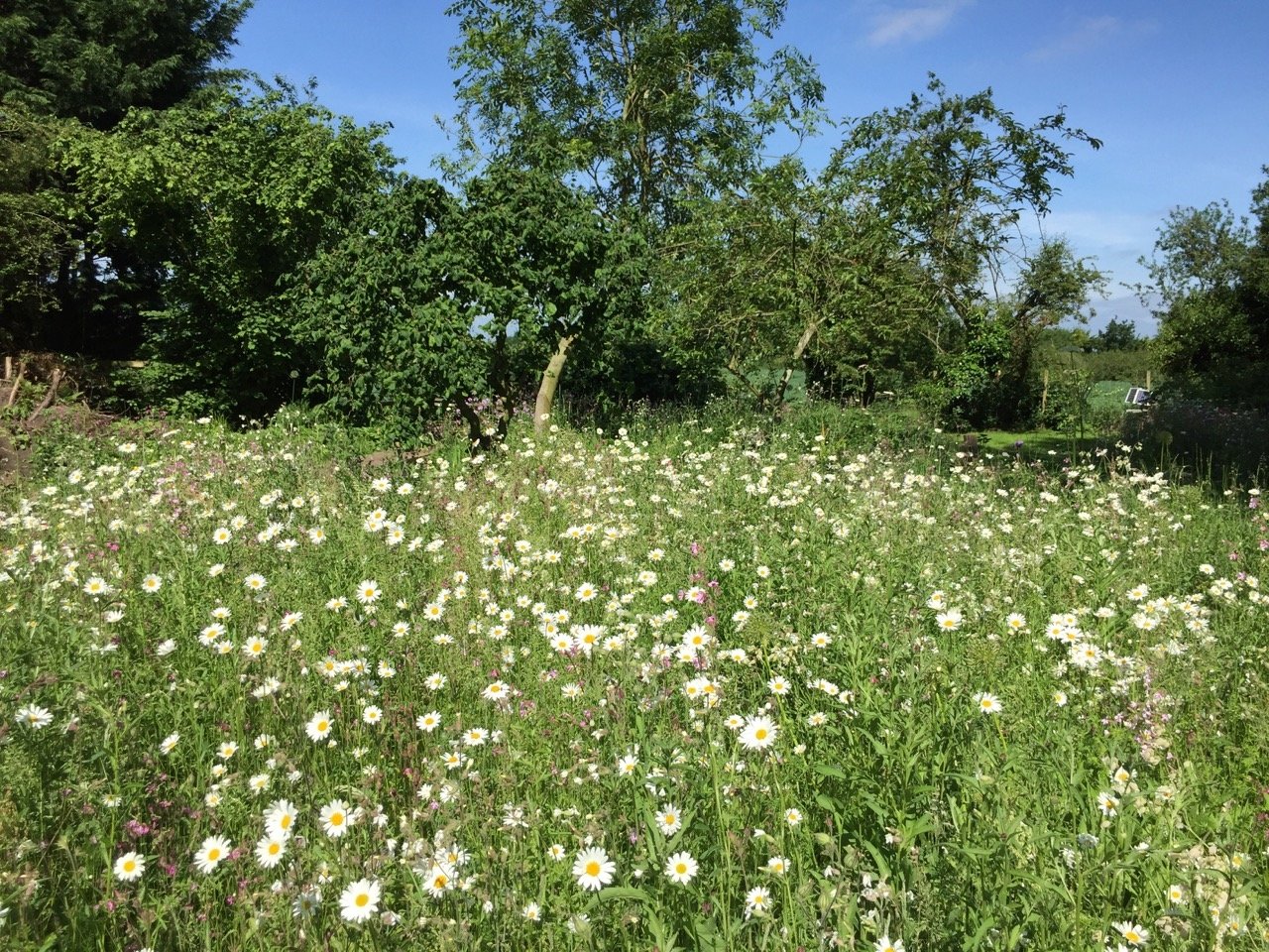 Mid june brings the oxeye daisies and grasses (which have come on their own) starting to flower. This is how it looks at the moment