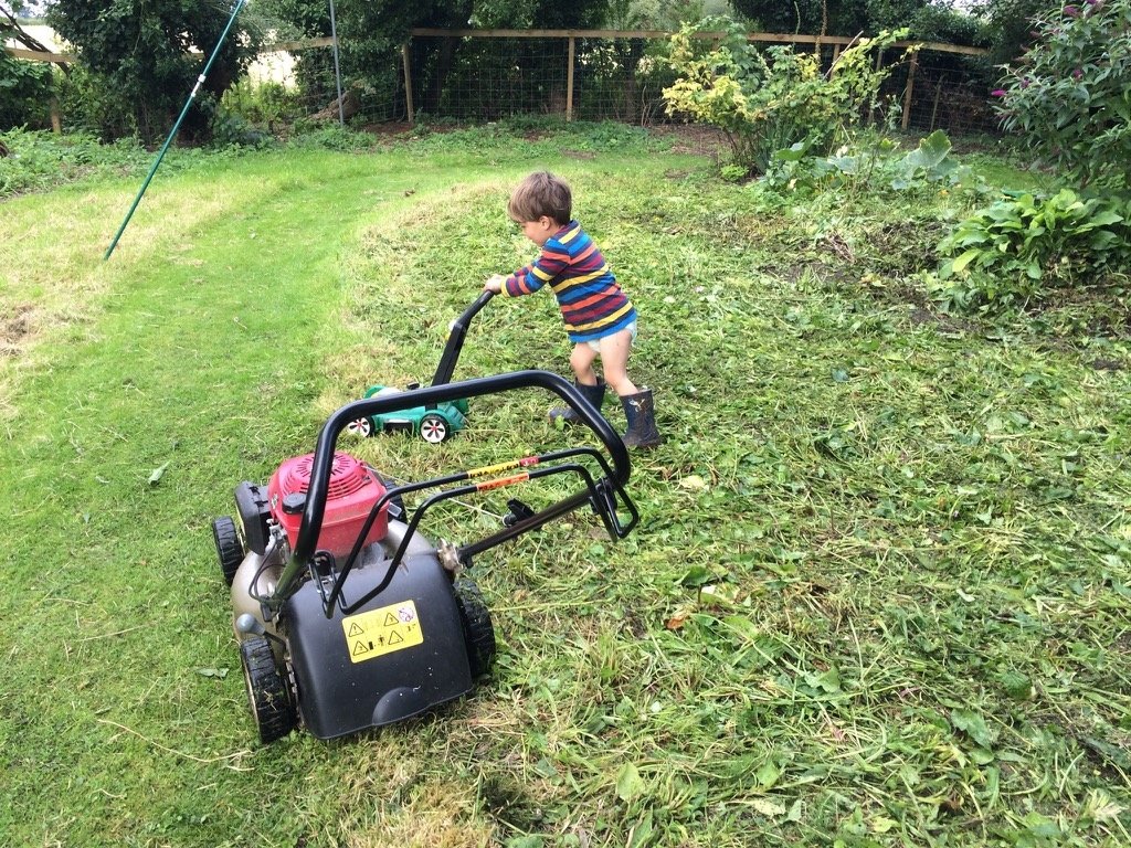 Then end of august to mid september I cut it, depending how its looking. If its a hot summer it goes over a bit more quickly. Looks pretty horrendous for a week or so then, but it will put on new growth pretty quickly and look much like it does in early spring again. I strim it, leave the hay to dry out for a few days to let any seed drop, then hoover it up with the mower, then give it another cut to get rid of as much greenery as possible. (This is taken before the second cut)