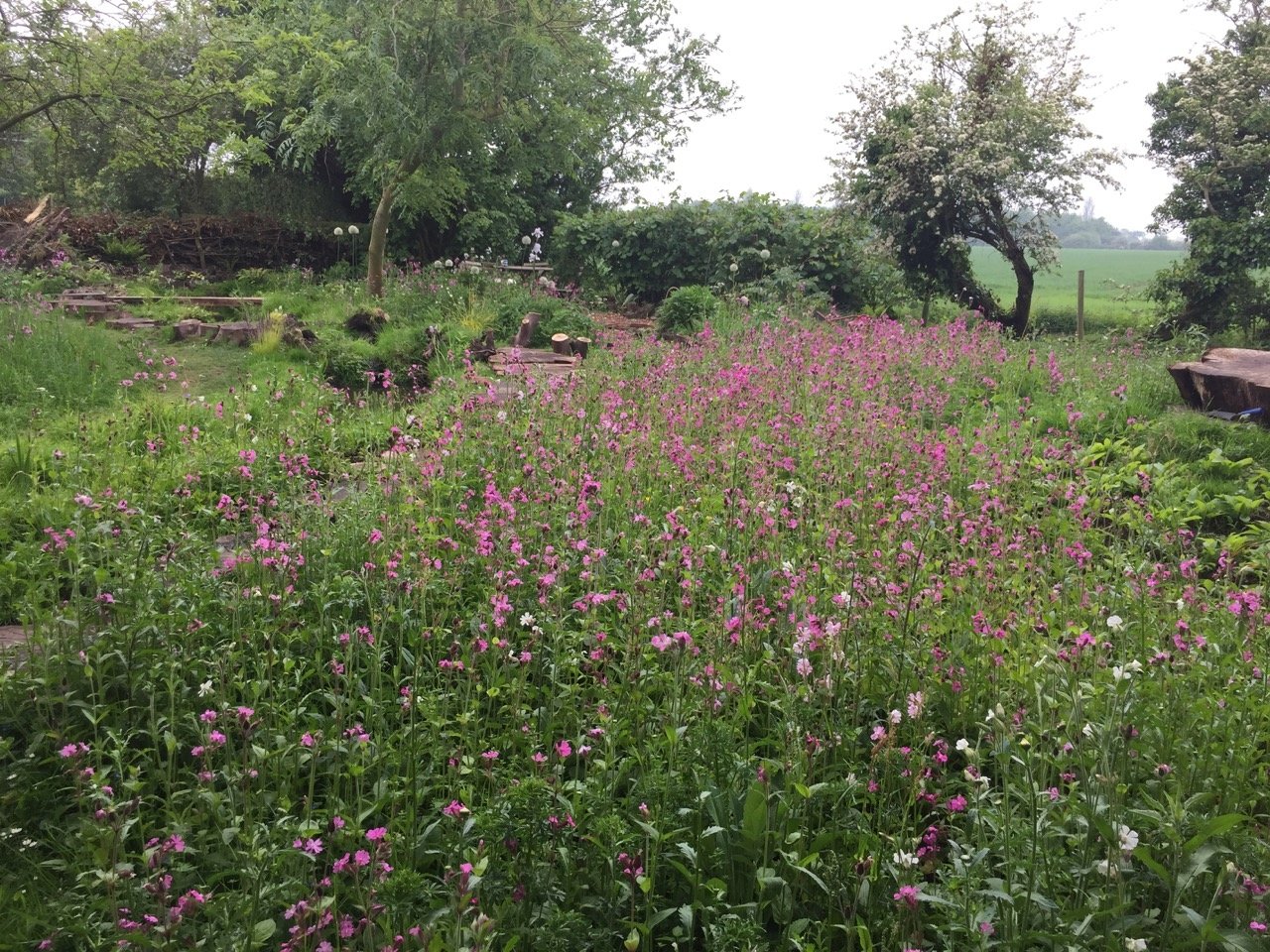 Spring - red campion dominates initially, followed by white campion joining in by late may/early june Mid june brings the oxeye daisies and grasses (which have come on their own) starting to flower. This is how it looks at the moment