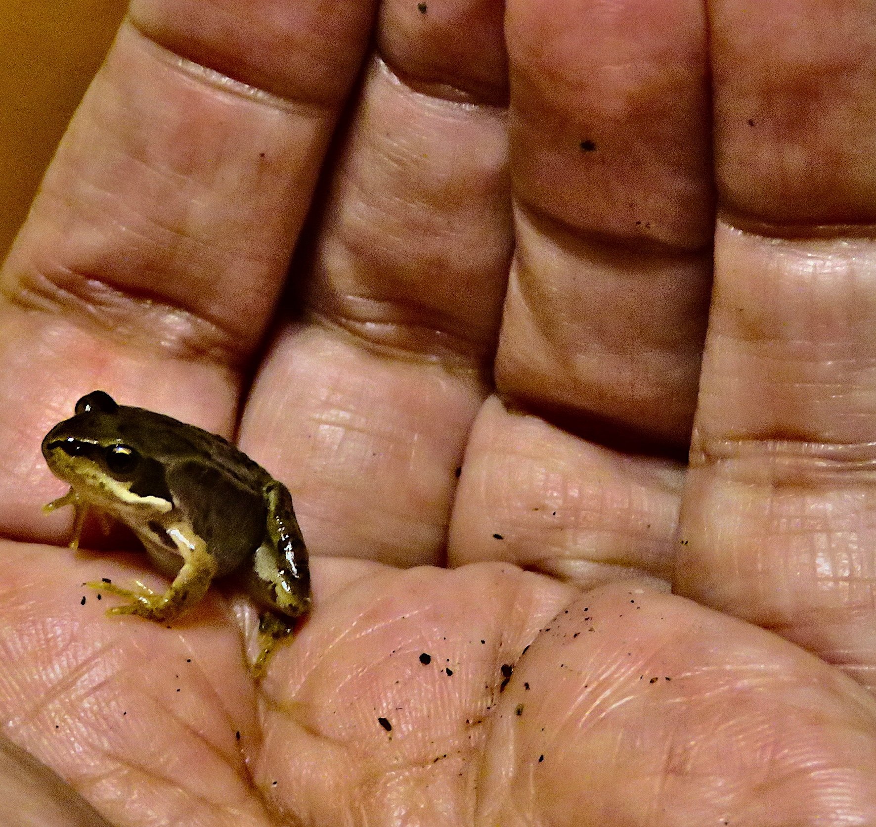 I know if left alone the strongest will survive but I wanted to ensure as many as possible turned into frogs so I fed them boiled lettuce to begin with. (Boil up old outside leaves, chop finely, freeze in ice cube tray and plonk one in every day). When out of lettuce I tried spinach which was eagerly accepted then during this hot weather I was watching them while eating some watermelon when a bit fell in and they pounced, so now melon rind has been added to their diet. Yesterday I had a bit of half microwaved sweet potato which didn't fit on the barbie and, guess what, they loved it!
