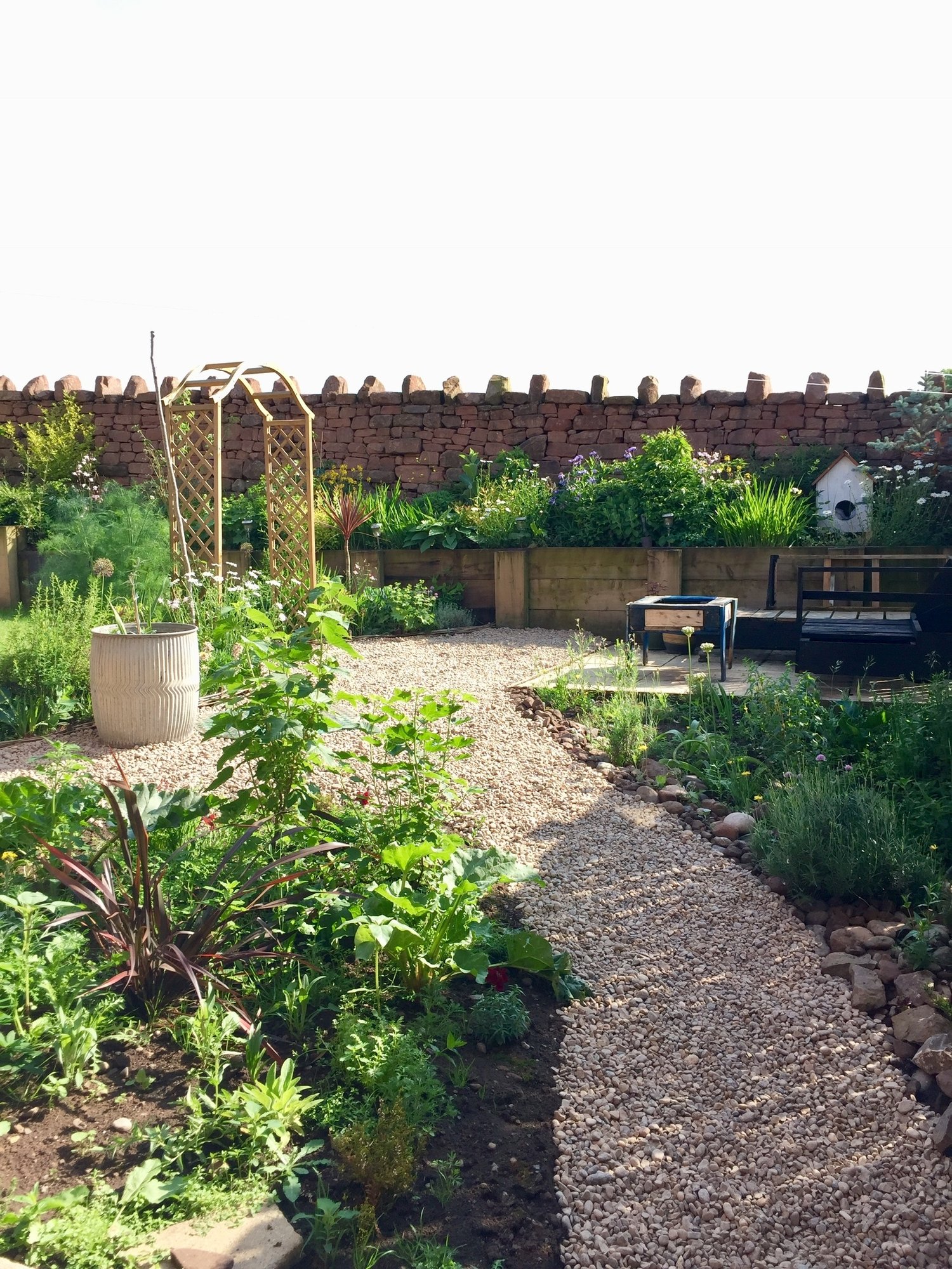 My garden is currently a ‘pretty cottage garden’ and I want a hard landscaped, tall structures, jungle / jurrasic type garden. (Jurassic is the best way I can describe the vision 😂)
