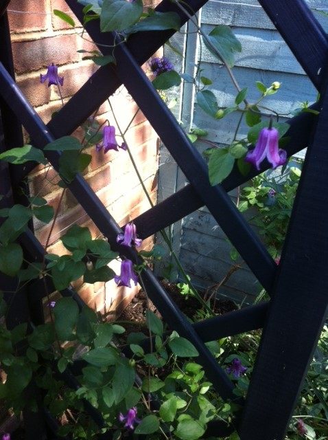Do you all remember when I ordered two clematis from Taylors for our pergola ... well, they arrived in late June ... just look at C. texensis 'Queen Mother' now