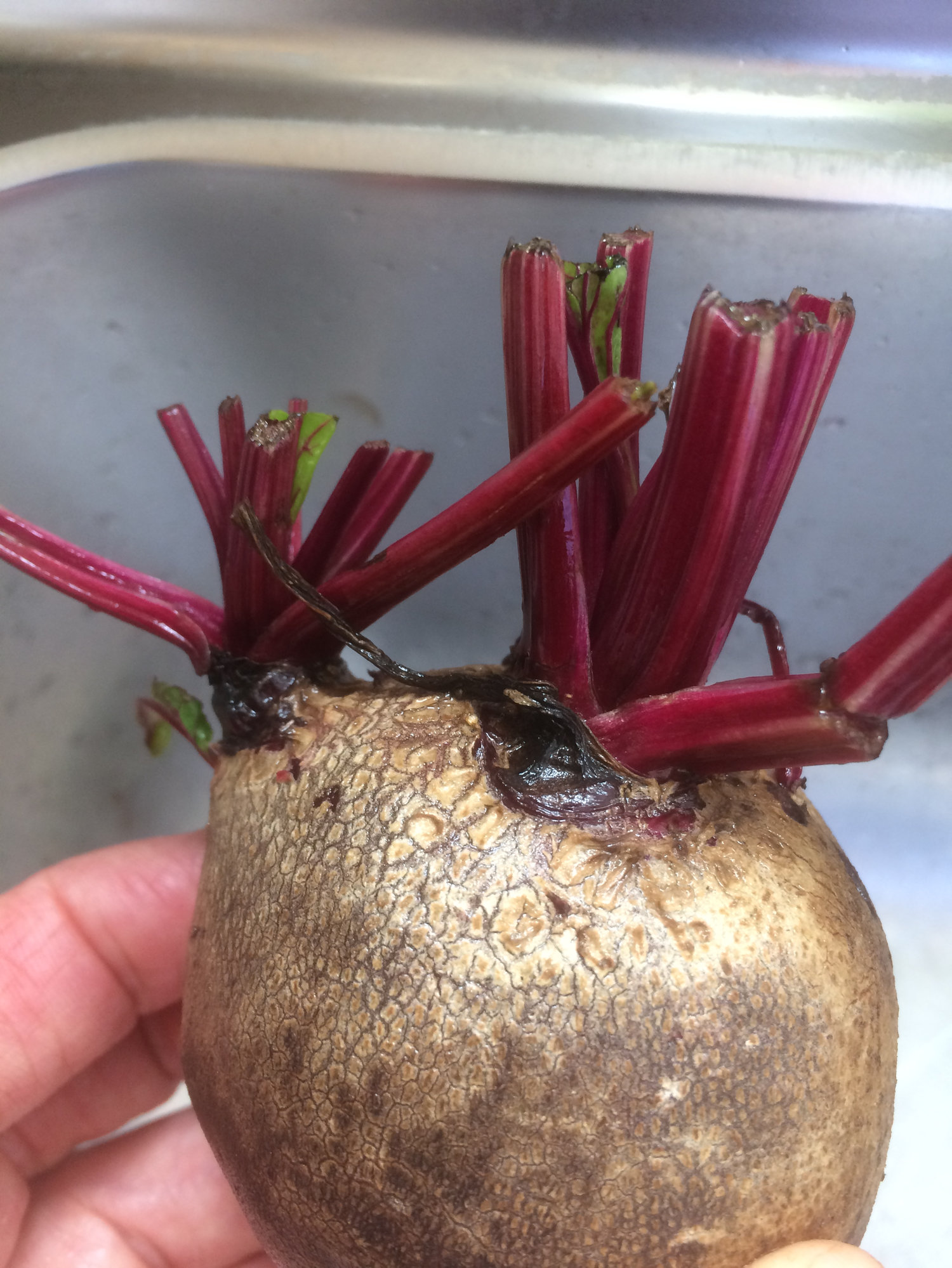 Anyone ever seen this below two tops on one beetroot! I did not notice when I took most of the leaves off. Another curiosity for us gardeners.