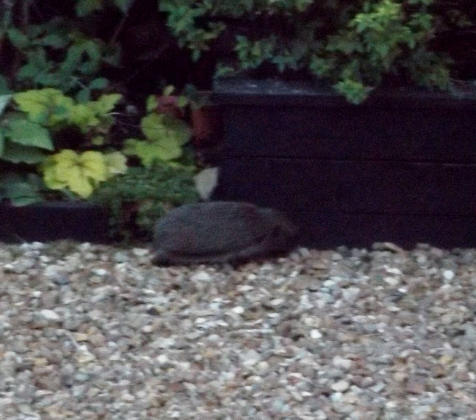 Morning all/afties Pat - hope you're cosy now. Yes - overground is far more attractive to me too Been awake ages - thrilled about the little hedgehog family. That pic is mum. She was snuffling around in the big border when I went out with daughter to take a quiet look after I put some food out. They have a little nesting area in my wee shady border along the back fence. I discovered a baby yesterday at lunchtime when I watered. I was a bit worried that it was on it's own, but relieved to see mum last night Hope LG enjoys a warm shower today. The quarry sounds very interesting Obelixx. I like the idea that these things have been around for millenia, and will hopefully be so in millenia to come. We might get a little drop of rain today. Hope so. Think Joyce may already have some. It was vaguely trying last night.