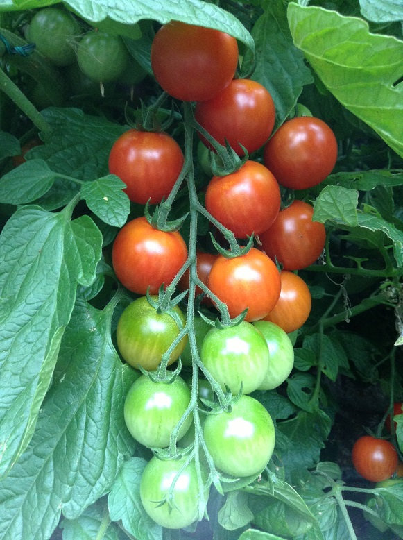 Large cherry tomato is Sakura, small plum cherry not sure of the variety and then there is indigo blue.