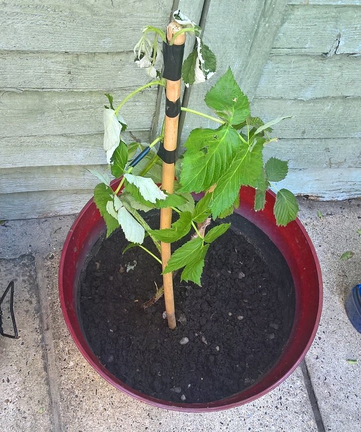 I potted some Autumn Bliss Raspberries canes yesterday. They came a little worse for wear, with several broken/bent stems, having been delivered, but both seem to have deteriorated rapidly.