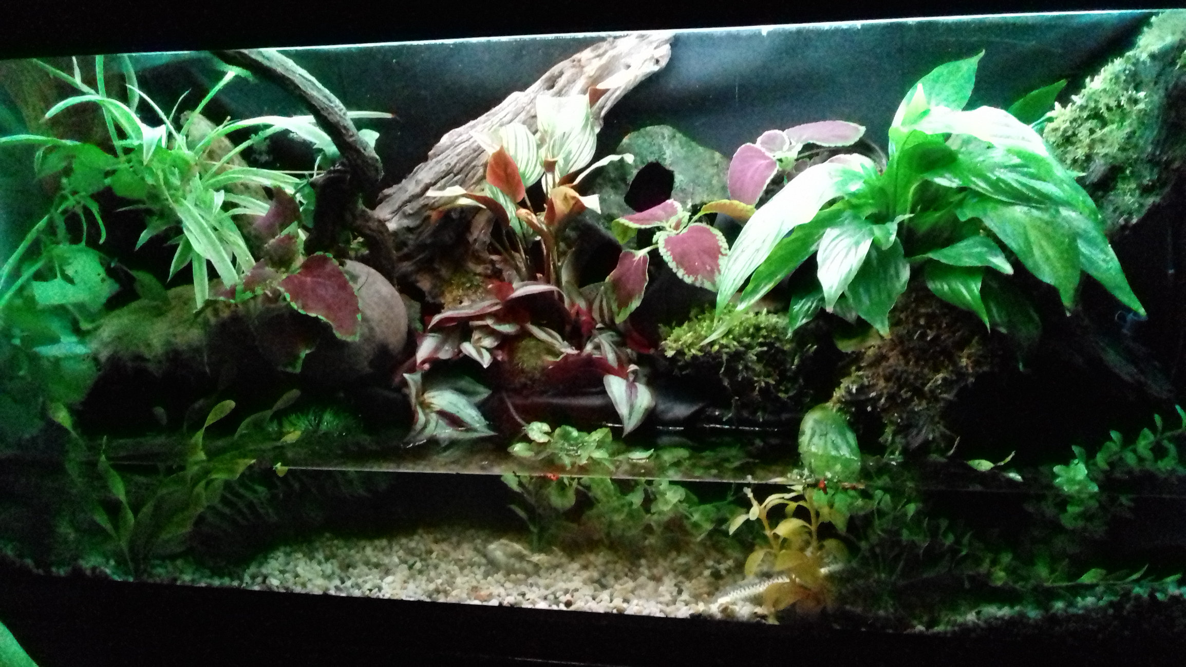 I decided to combine my 2 loves of gardening and all things reptilian, amphibian etc and transform my empty fish tank into a micro habitat. I'm going to see how the plants do first before adding maybe some dart frogs and neon tetra fish. Im going to add a fogger/humidifier too which will look great. I'd love to see other people's indoor gardens whether it be a terrarium or butterfly house (I dream of having one of those!) or even a bonsai or cactus display. 0