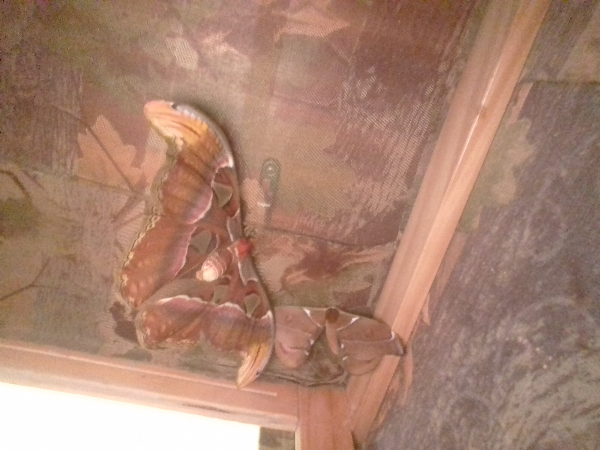 If possible, take her back outside, ideally so that she can climb upwards into the hedge, females try to conserve as much energy as possible so won't do much flying in my experience and will just flutter to a resting place waiting for the males to arrive. All the types of caterpillar that I've raised have eaten privet leaves but the adult moths have preferred to lay eggs on buddleia so if you have either of those she may lay her eggs in your garden I had a wonderful surprise this morning, I have had a male and female of 2 types of moth which have been refusing to hatch (they went into diapause/hibernation) for months! I hadn't checked them for a couple of days but the female of each kind have hatched! Must be because it's extra humid with the rain They are a Suraka silkmoth and a Giant Atlas moth. Beautiful!