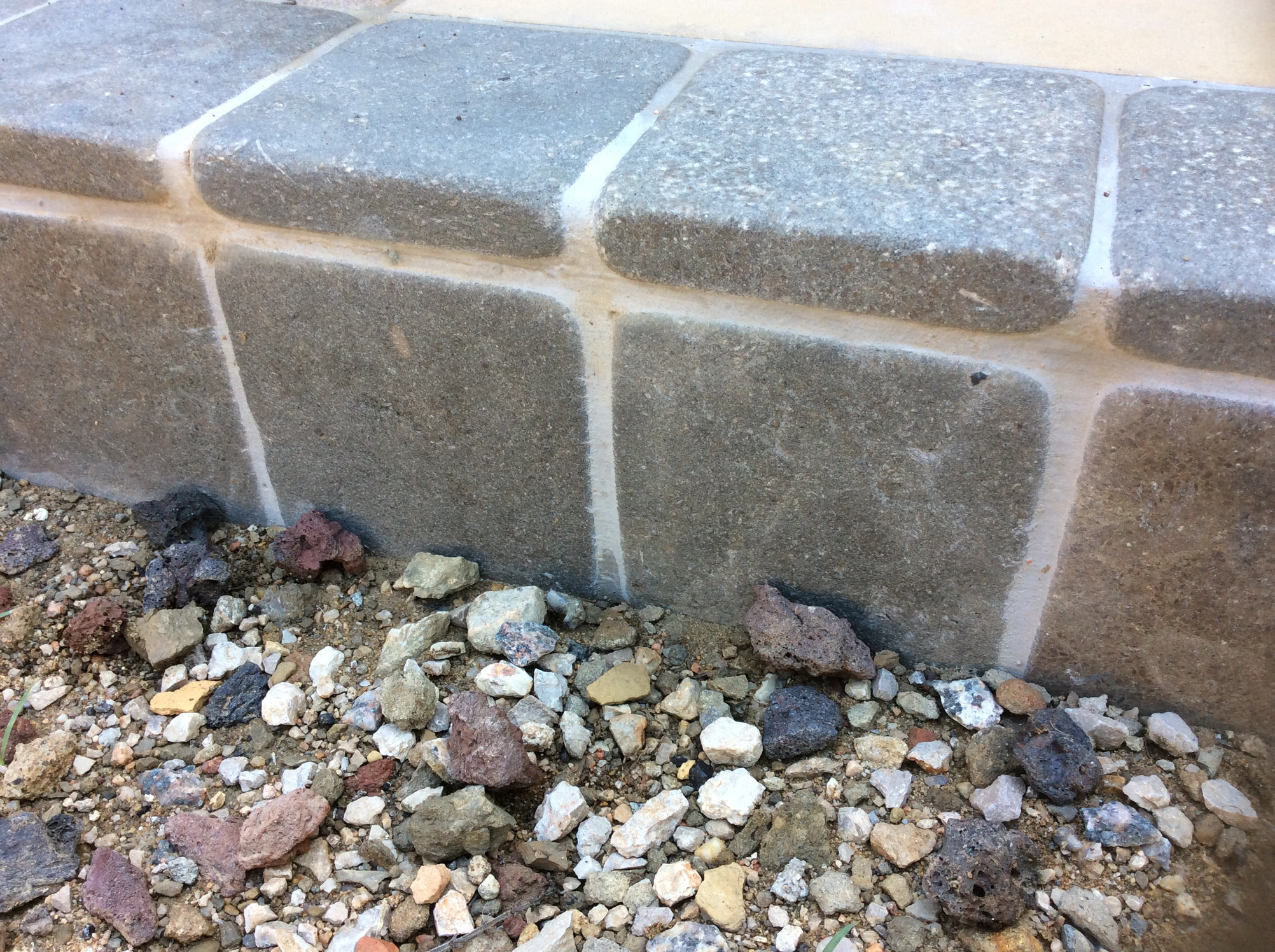 I am asking about the tier where the slabs stop and the beds begin. Is there anything retaining the slabs at that point? For example 2 retaining walls, 1 for the whole tier, and 1 for the edge of the slabs?