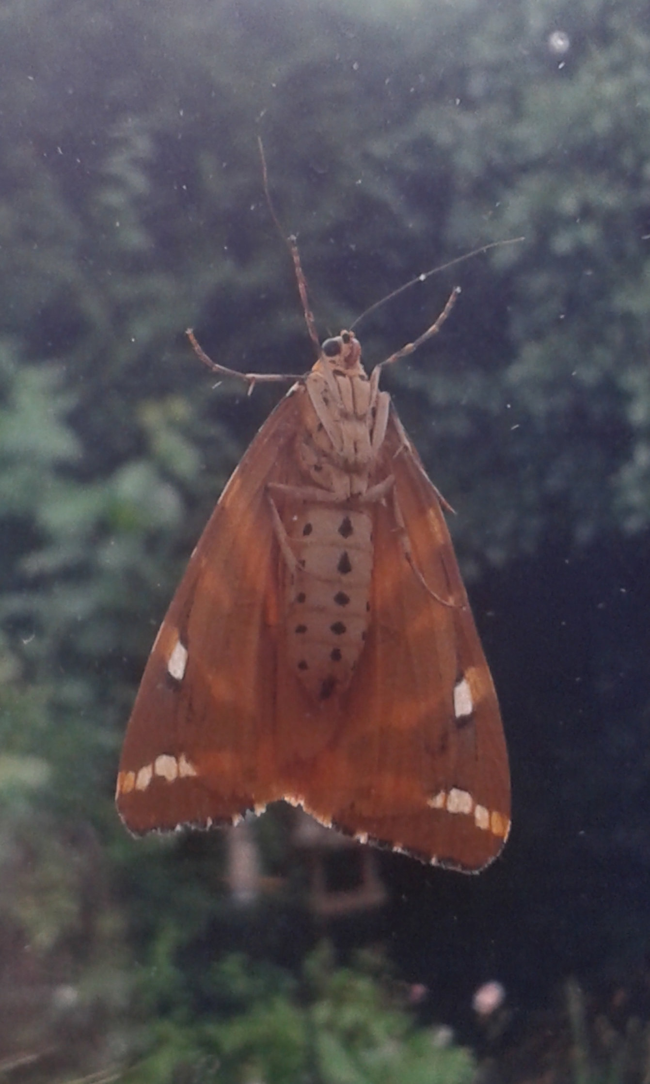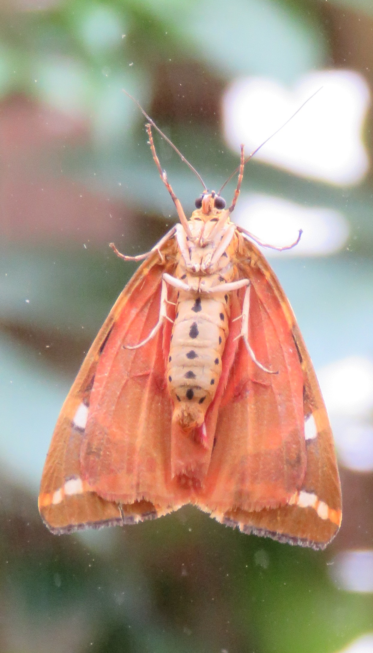 I took this picture of a Jersey Tiger Moth on my window, keeping out of the rain. They are beautiful on the outside, but also interesting to see the underside of one.