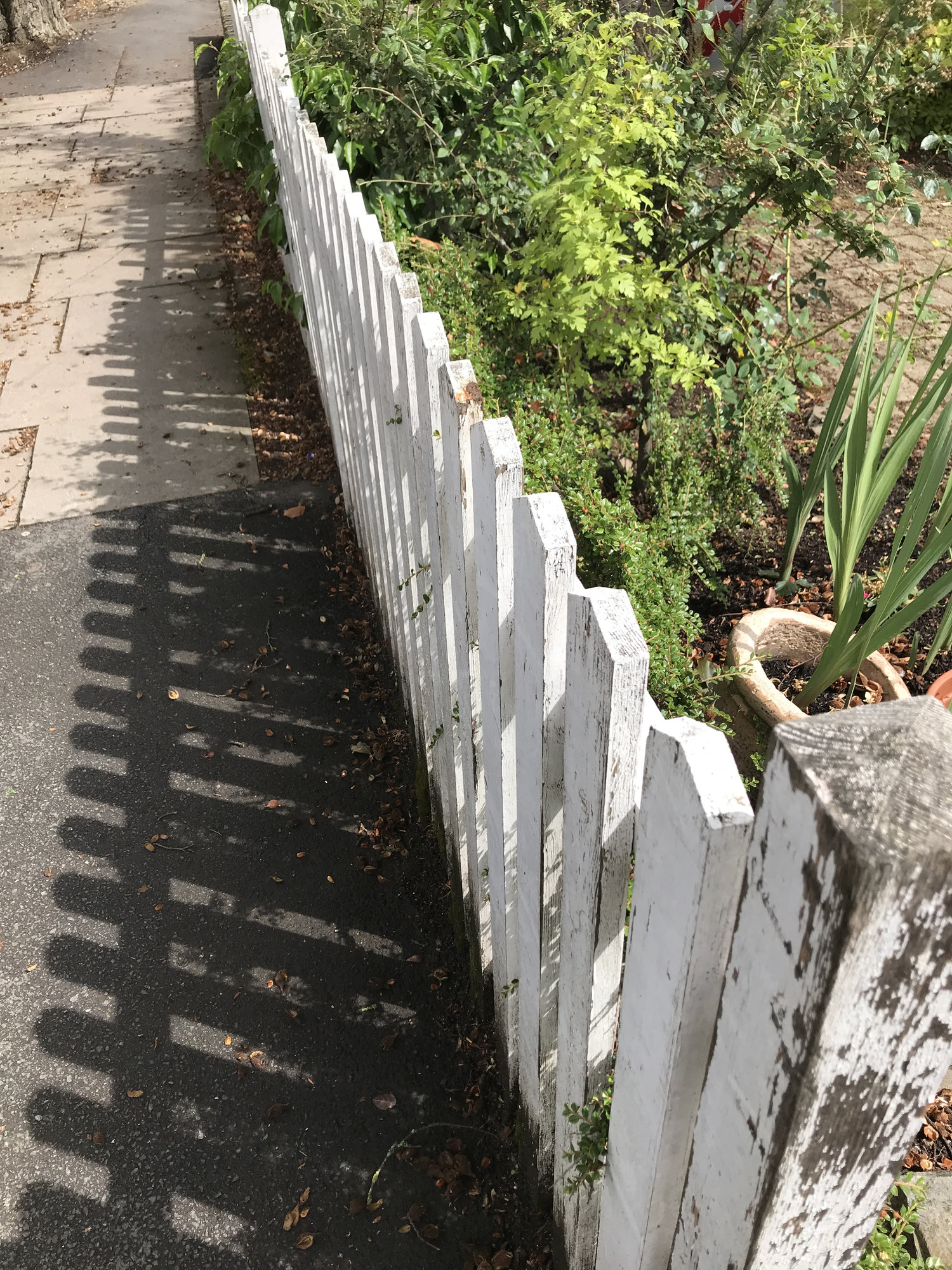 Im looking for some ideas. We have a white picket fence in the front garden bordering the pavement. It’s old, missing a few pieces and wobbly.