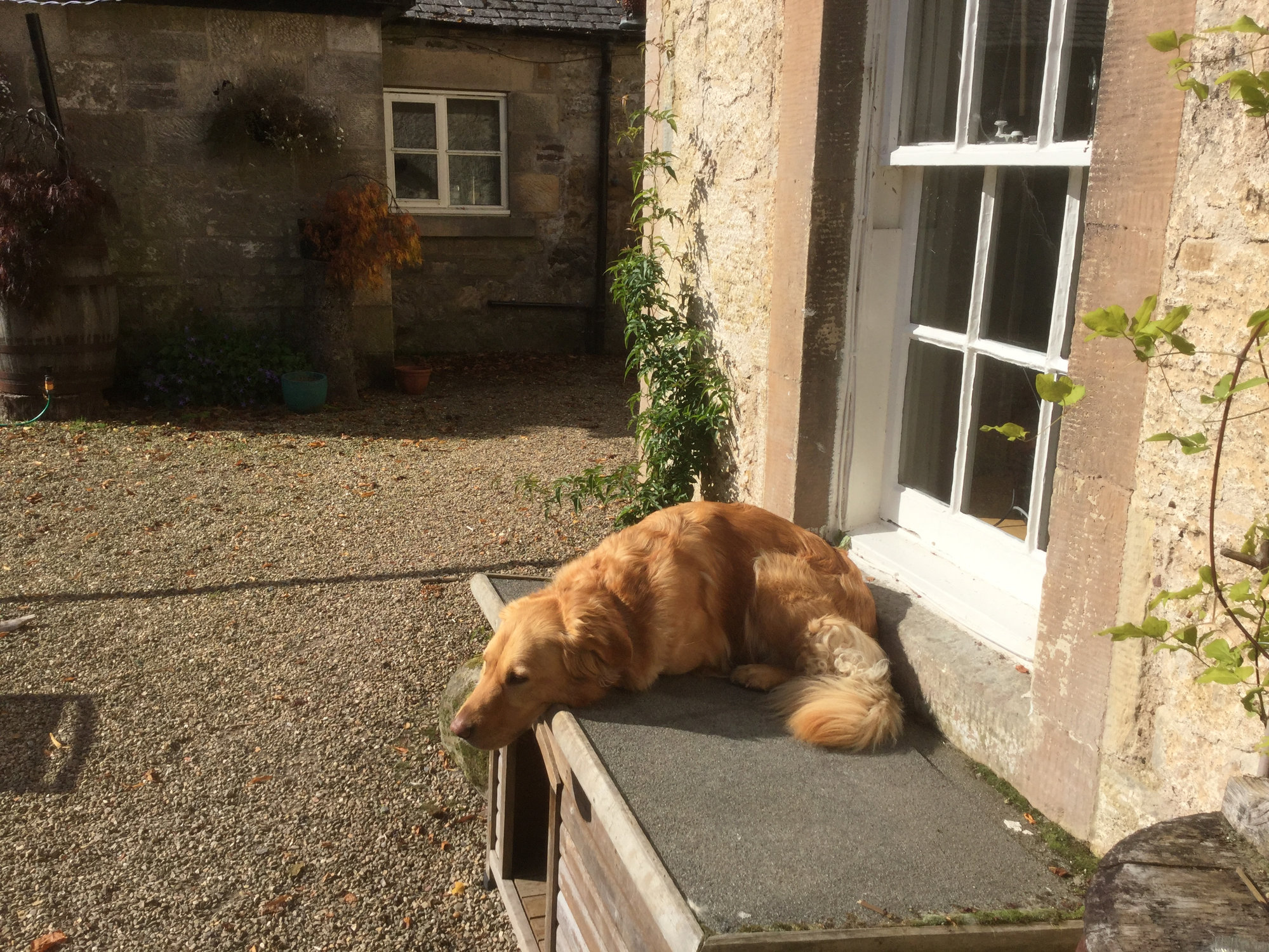 It’s a lovely morning here and Leo is making the most of it, He spends more time on top of his kennel than in it!