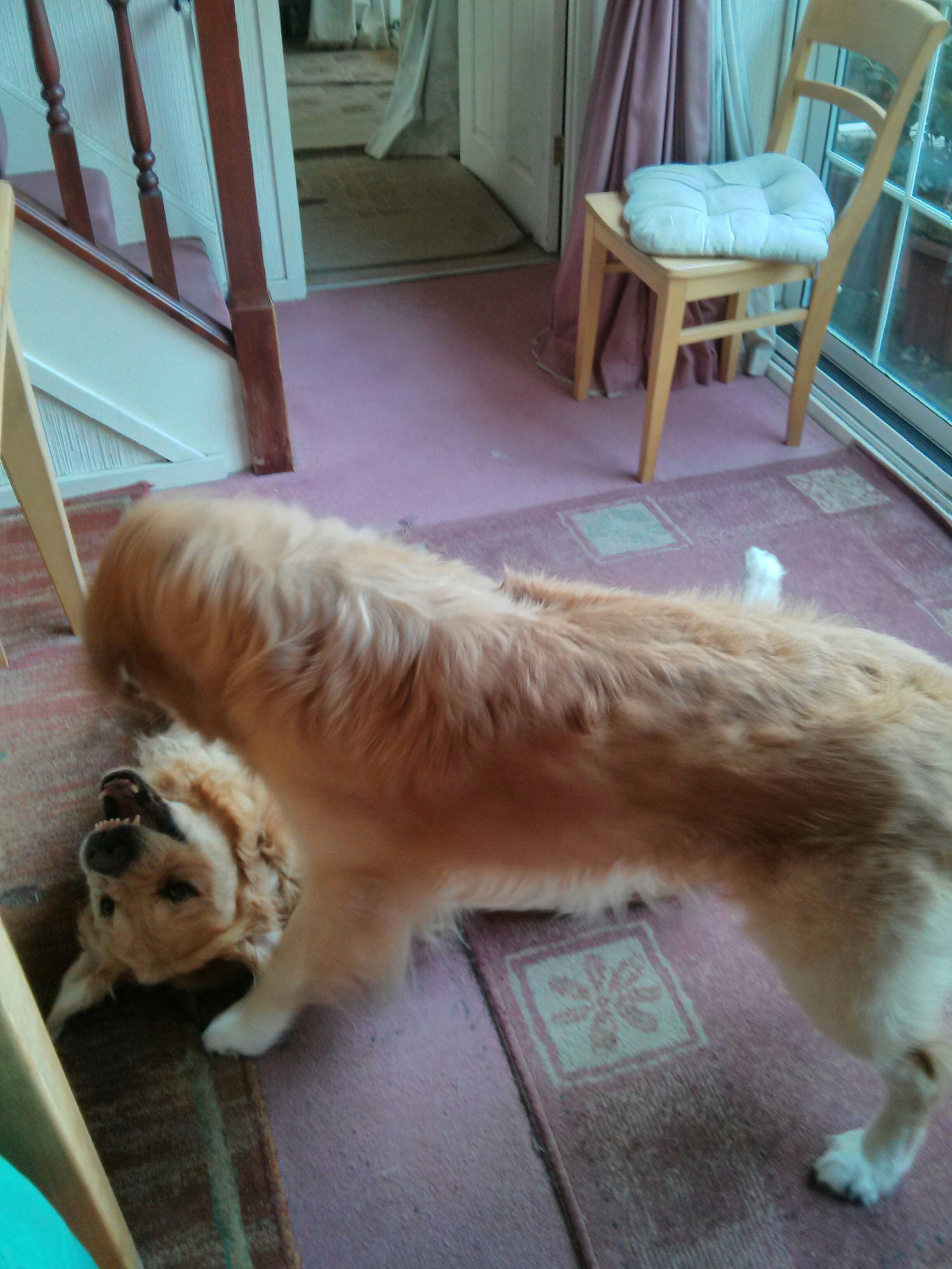 Most of the time barley stands over him. But berry gets his own back sometimes.