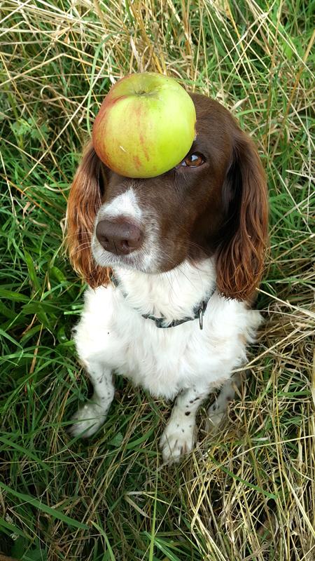 Meg gets mad when I steal the tasty tennis balls from the tasty tennis ball tree. She's a complusive hoarder and no one is allowed to play with 'her' toys. She loves to play fetch as long as no one touches her toys which admittedly makes fetch a much harder game to play. She does not appreciate things being balanced on her nose. I did not get that apple back...