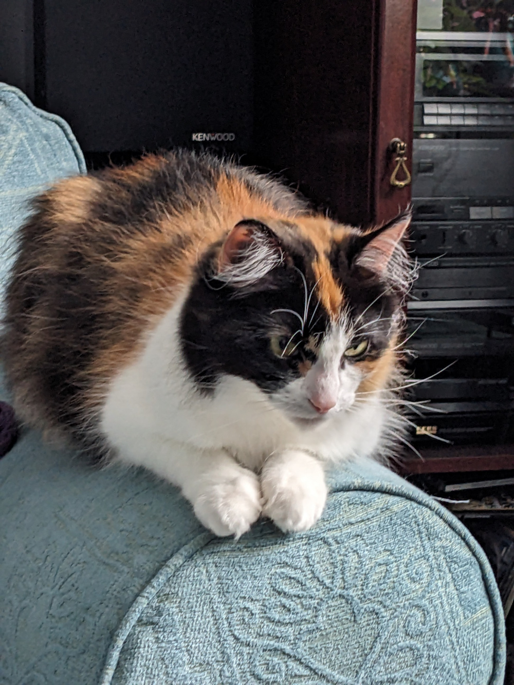 My 14 year old girl Ronni enjoying the morning sun.